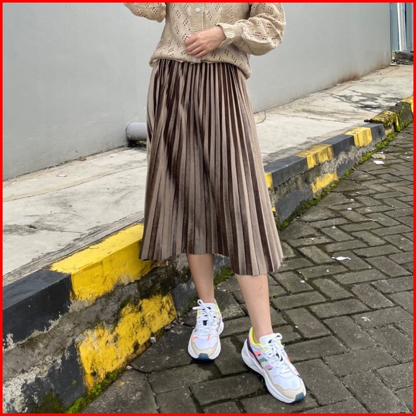 Rok Plisket Bludru Velvet 7 8 Premium Rok Plisket Bludru Pendek