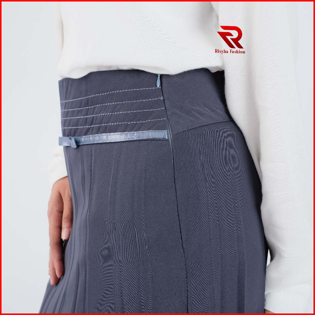 Risyha Skirt Ferrari - Rok Plisket Kerja Wanita Pinggang Pita Kiyowo Korean Style Premium Terbaru Payung Wavy Mayung
