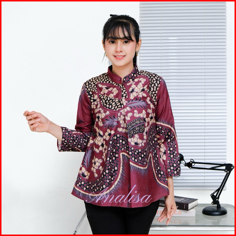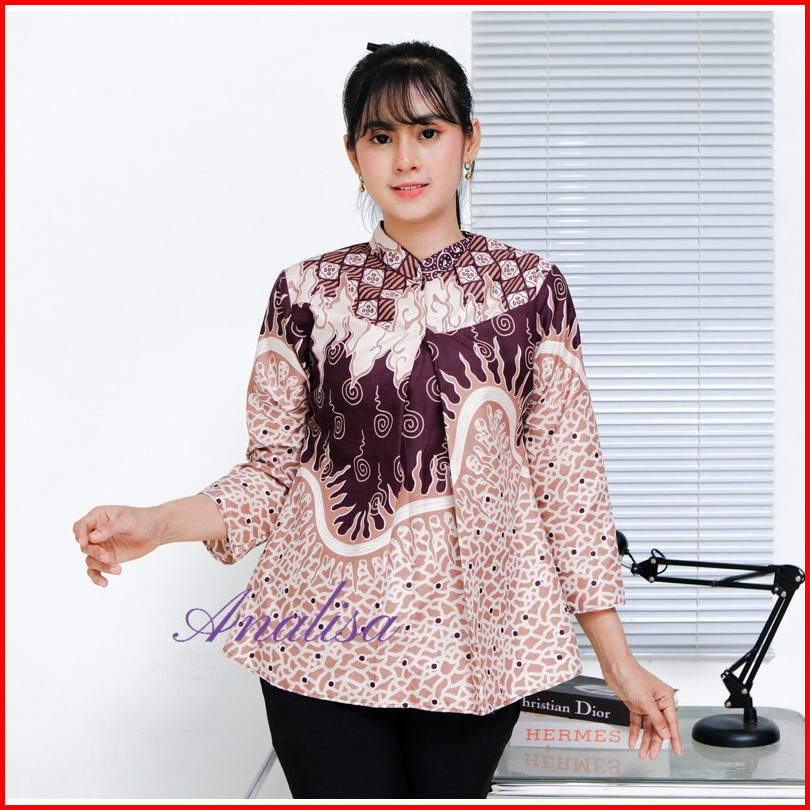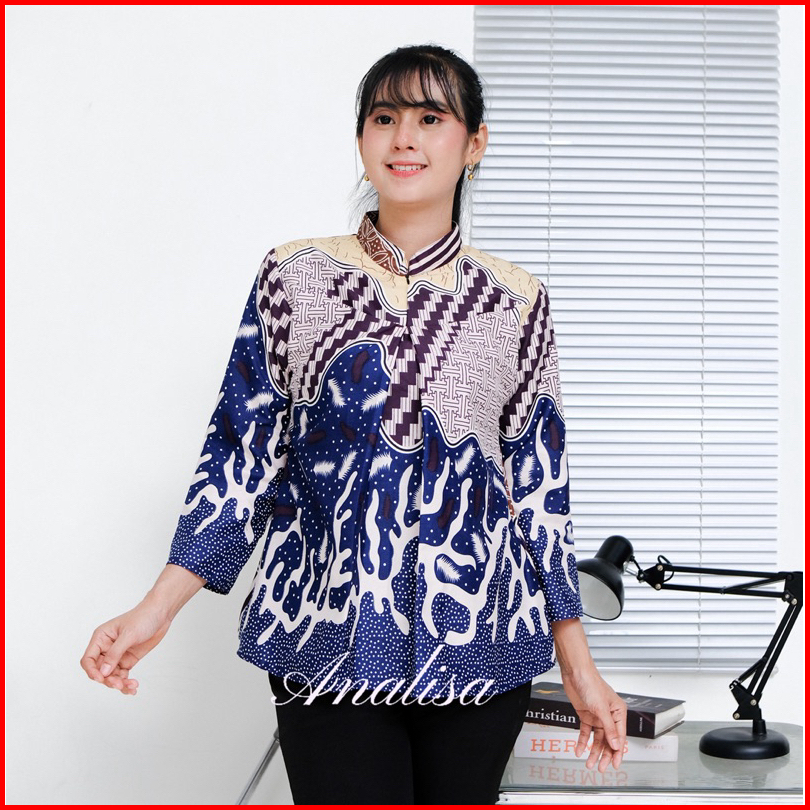 Analisa Atasan Blouse Batik Kerja Kantor Wanita Anggun Lengan Panjang 7 8