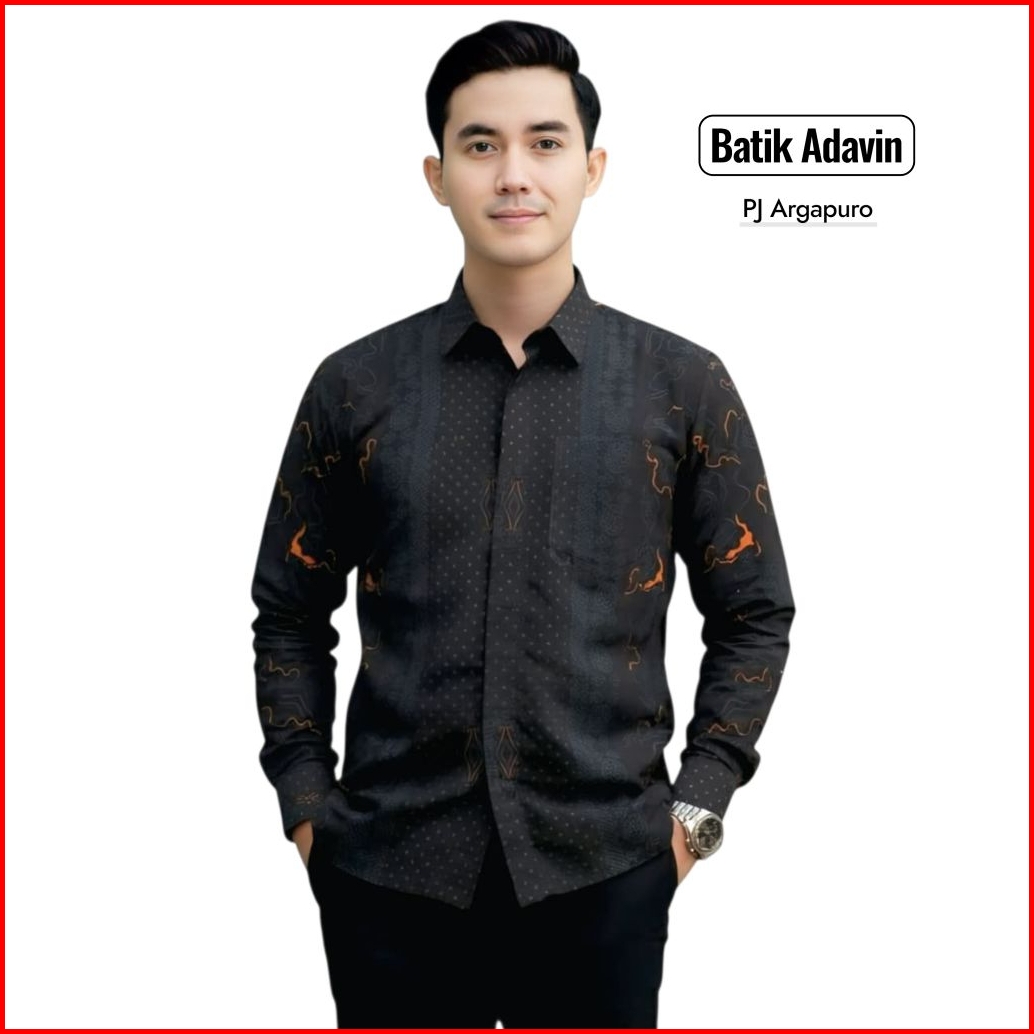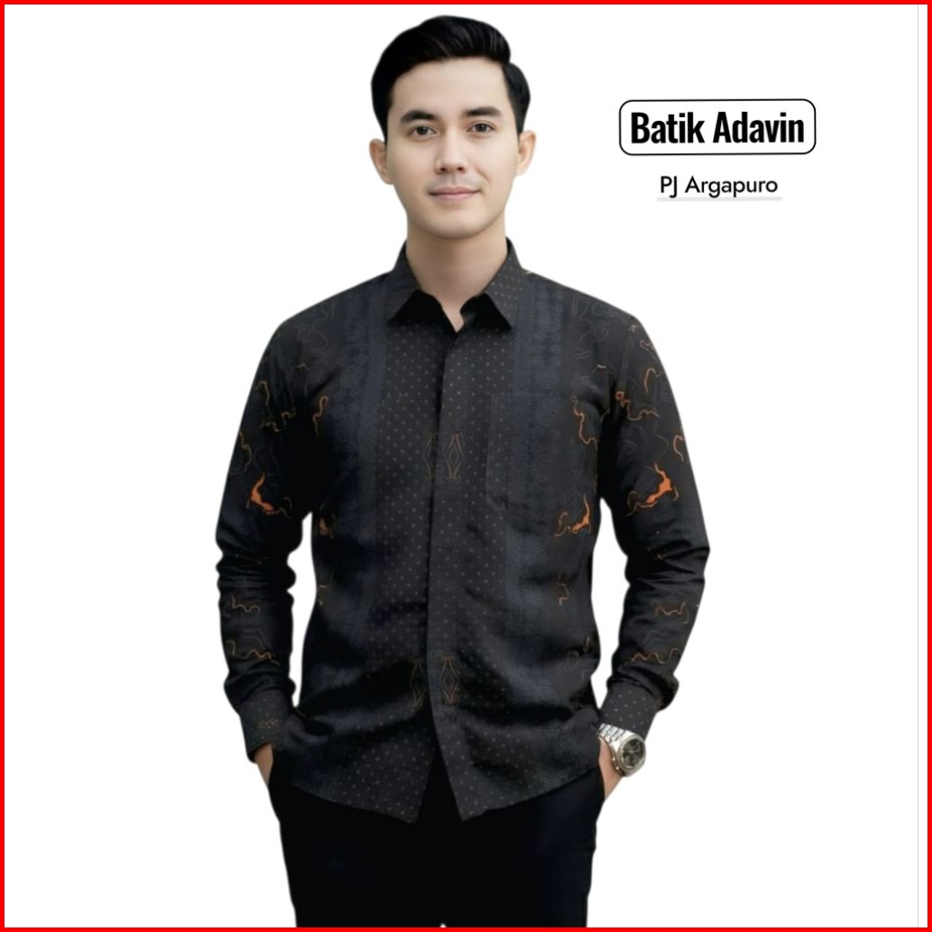 24 Jam Kota Bandung - Batik Pria Lengan Panjang Katun Hitam Argapuro Batik Adavin