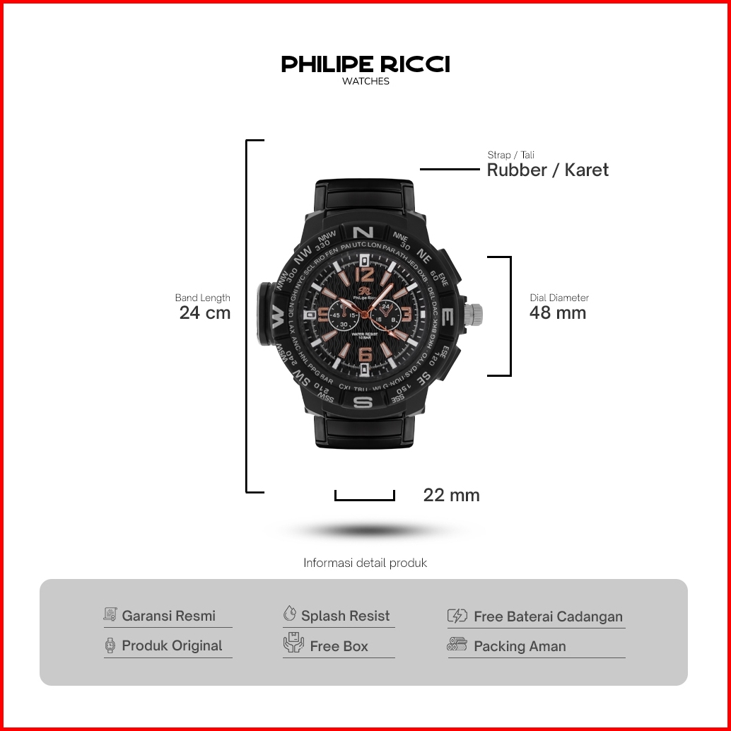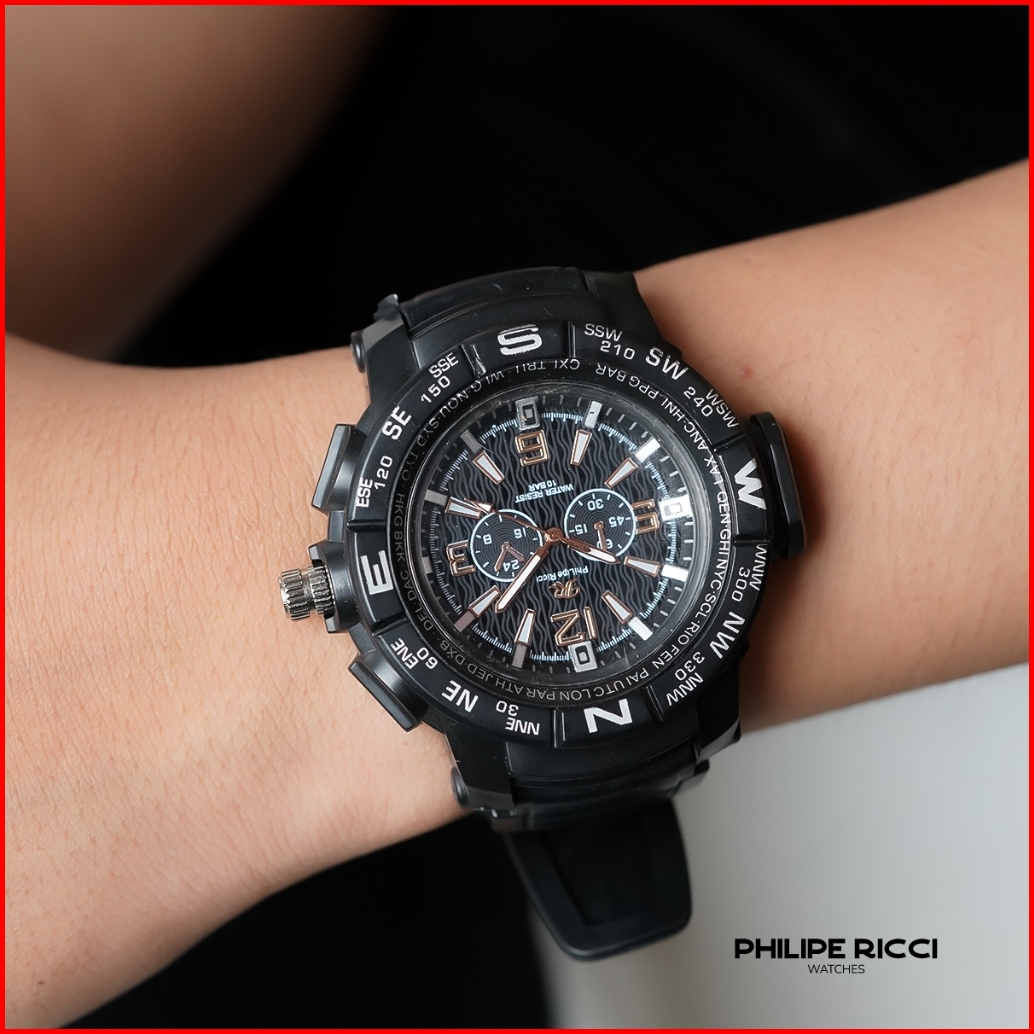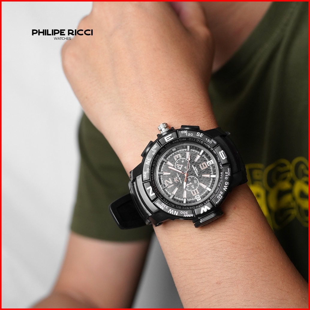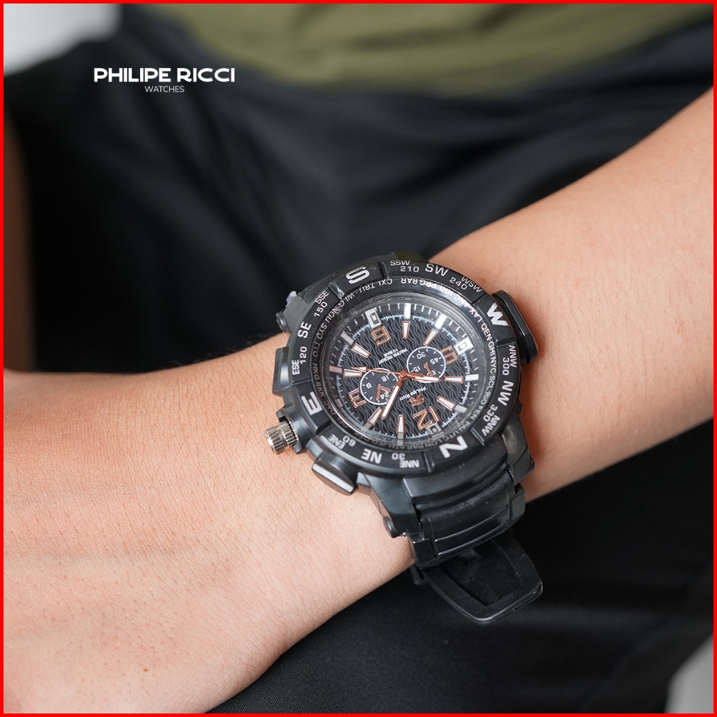 Philipe Ricci Jam Tangan Pria Karet Sport Trendi Kasual Modern Simpel Stylish 1801ac Free Box