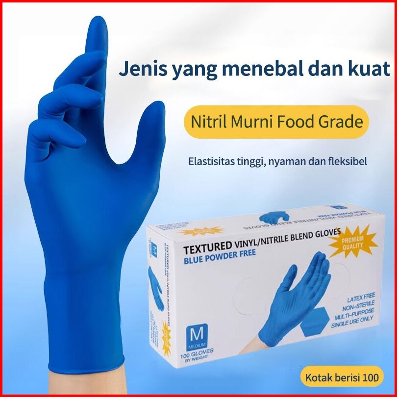 Sarung Tangan Nitril Karet Latex 100pcs Sarung 4size Waterproof And Oil Proof Menebal Dan Tidak Mudah