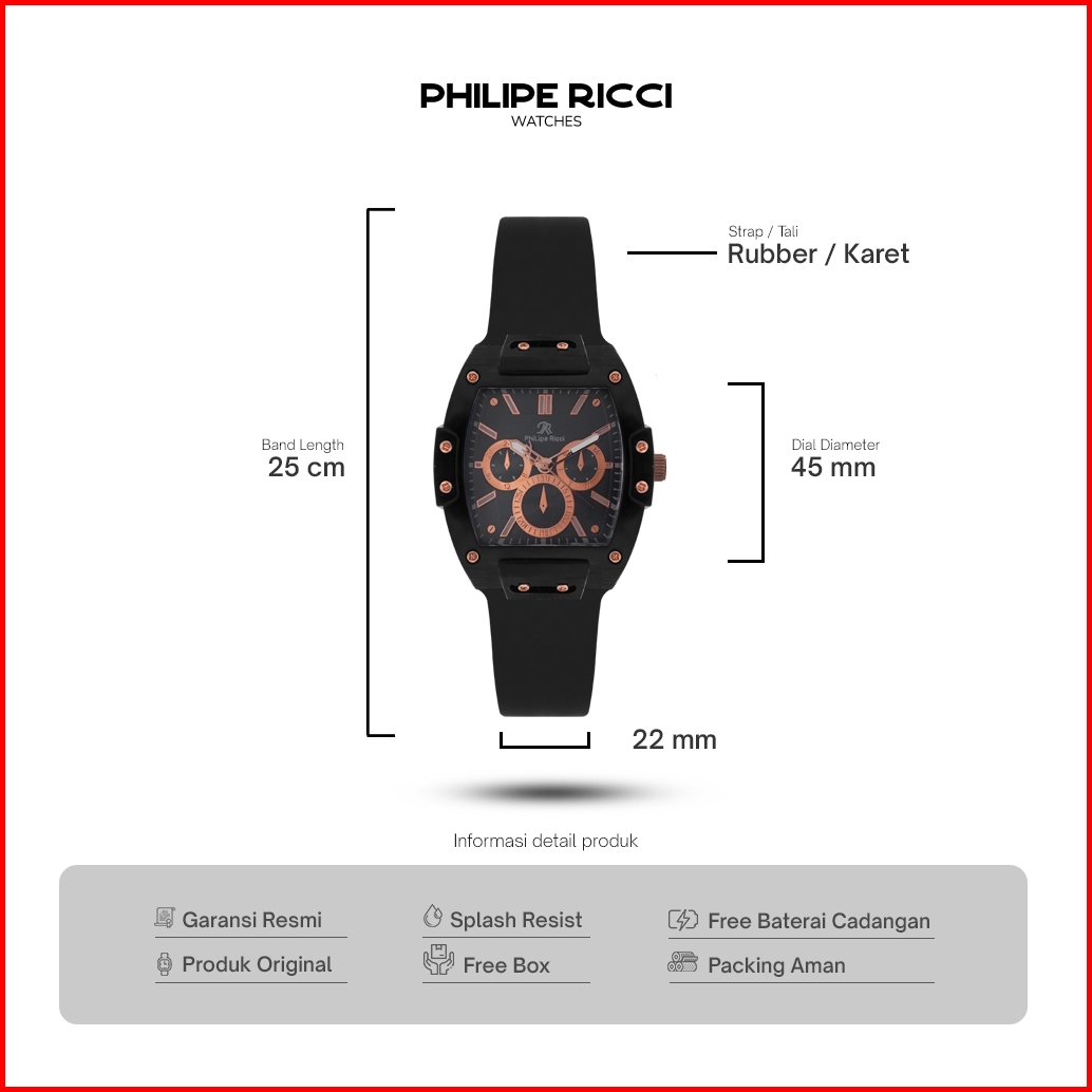 Philipe Ricci Jam Tangan Pria Karet Kece 100 Original Modern Terbaru 1005 Men Watches Free Baterai