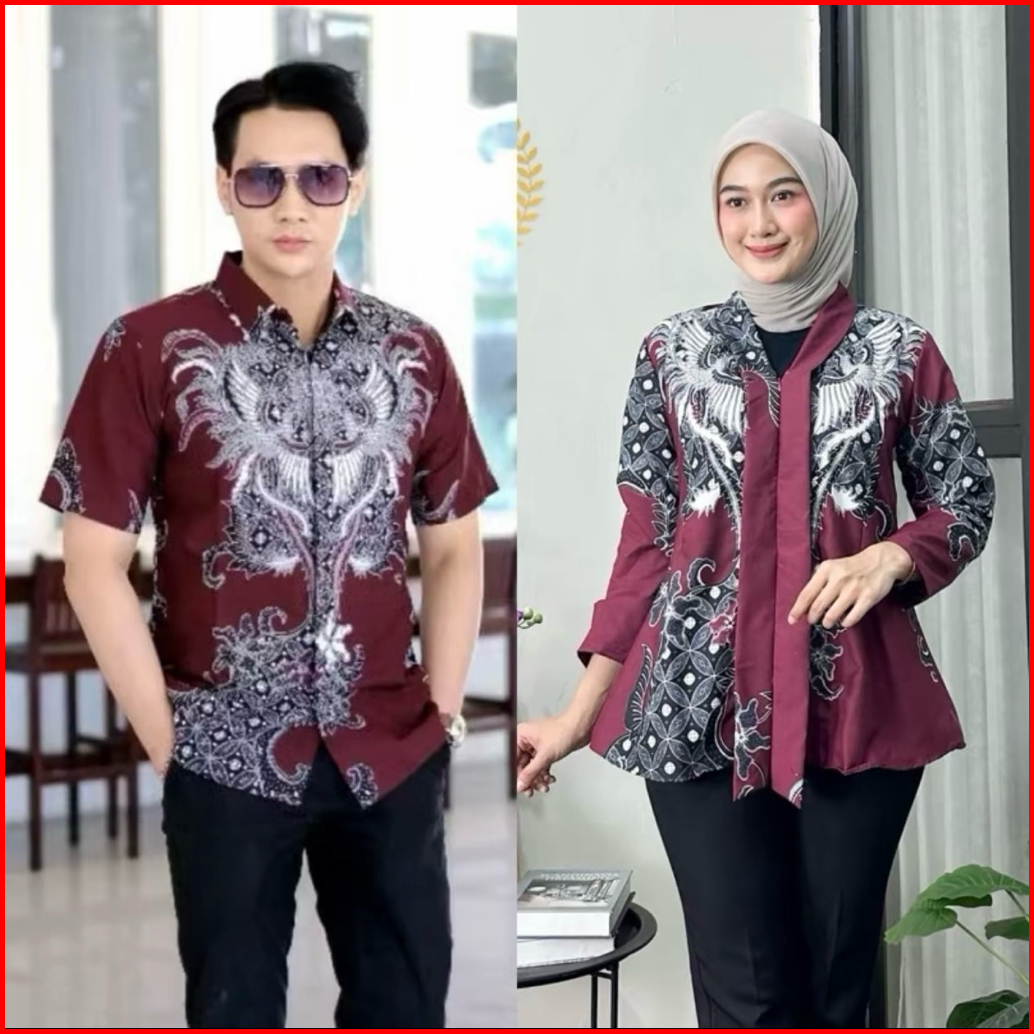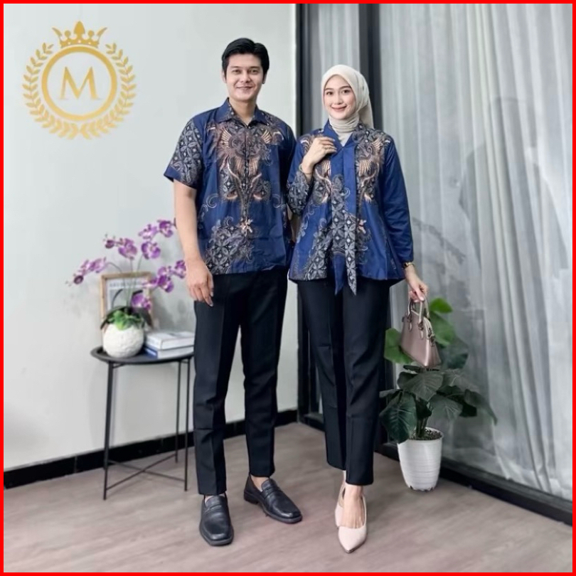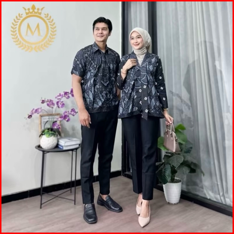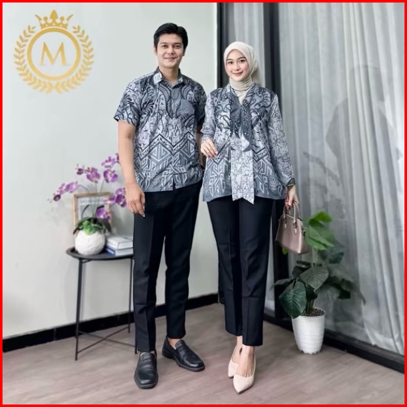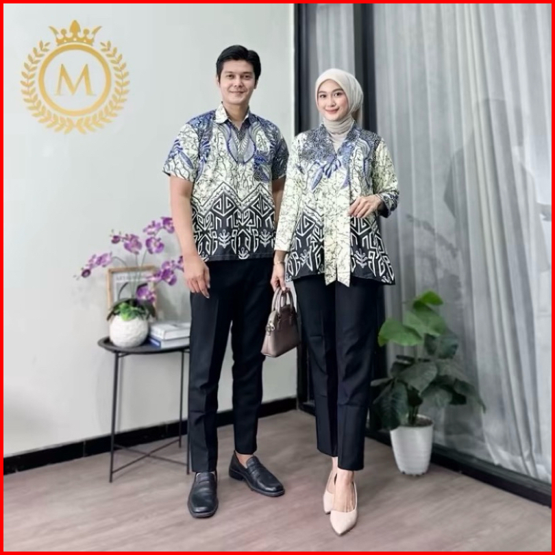 Atasan Batik Modern Kemeja Batik Lengan Pendek Blouse Batik Kutu Baru Seragam Batik Pasangan Baju Kerja Kantor Kekinian