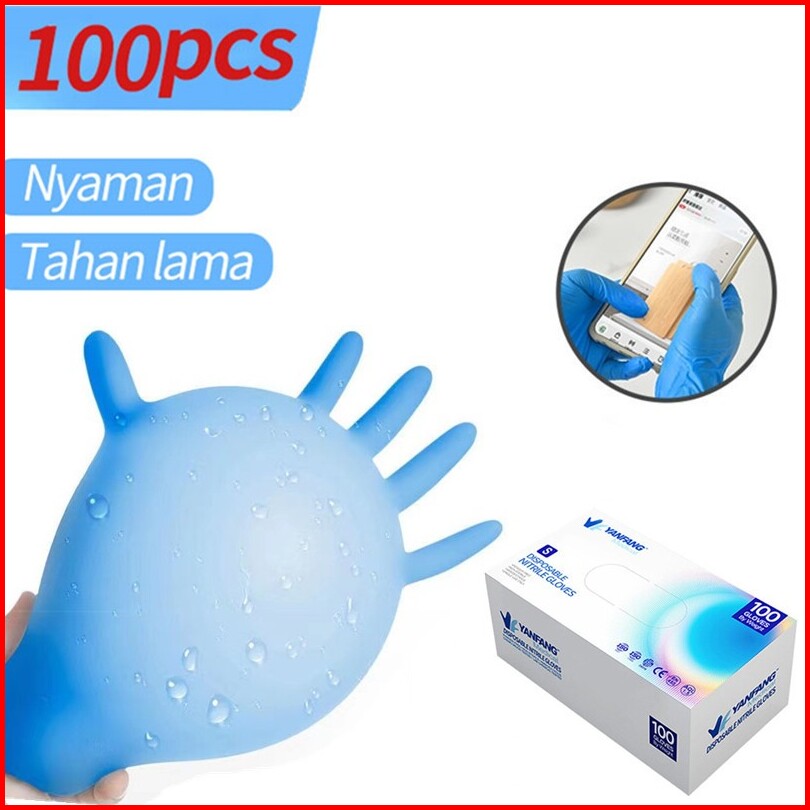 Sarung Tangan Pelindung Tangguh Nitrile Gloves S-m-l-xl 4size Waterproof And Oil Proof Menebal Dan Tidak Mudah Pecah 100