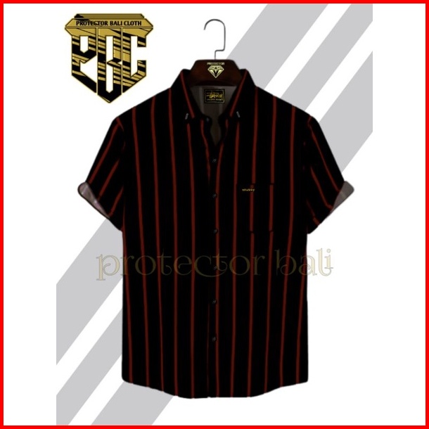 Kemeja Pria Boy Salur Distro Protector Bali Top Man Lengan Panjang Pendek Kasual Formal Kerja Kantor Polos Putih Hitam B