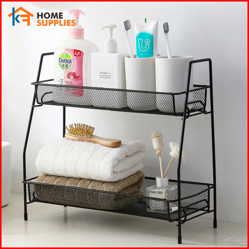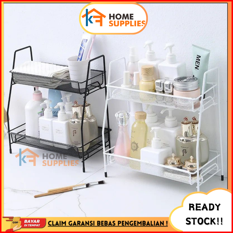 Kfrak Kosmetik Jaring 2 Susun Serbaguna Rak Bumbu Dapurjaring Besi Kuat Kokoh Anti Karat