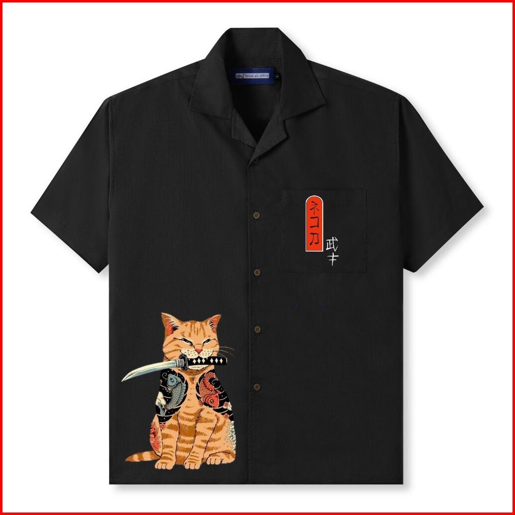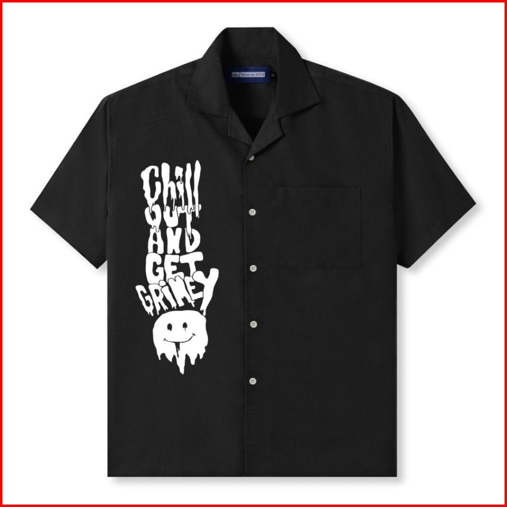 Clustercool - Kemeja Pria Hitam Print Casual Street Style Distro Katun