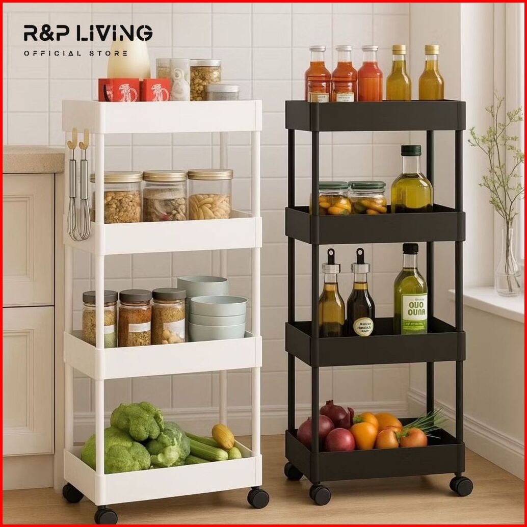 R P - Rak Persegi 4 Tingkat Bahan Plastik Dengan Roda Rak Kamar Mandi Bahan Plastik Portable