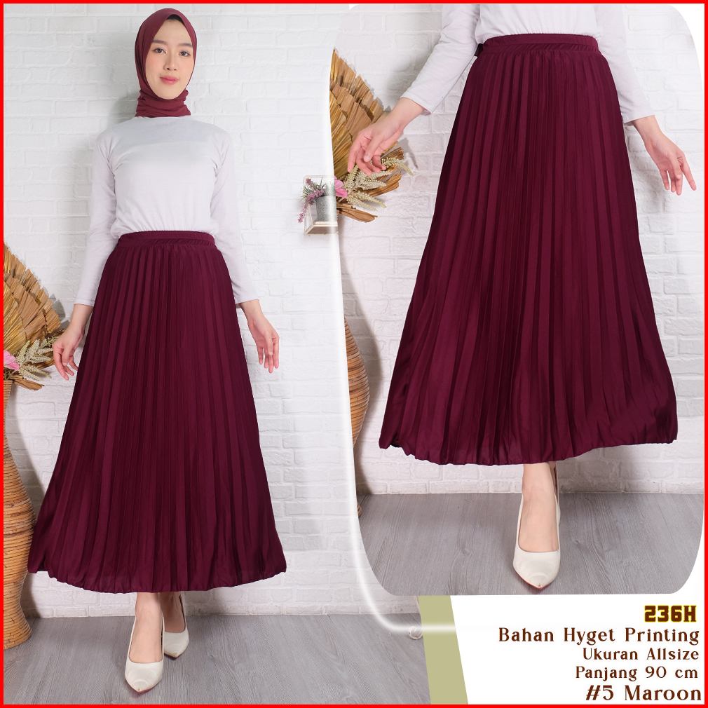 Rok Plisket Hyget Polos Premium Panjang Rok Payung Hyget Wanita 236hpolos