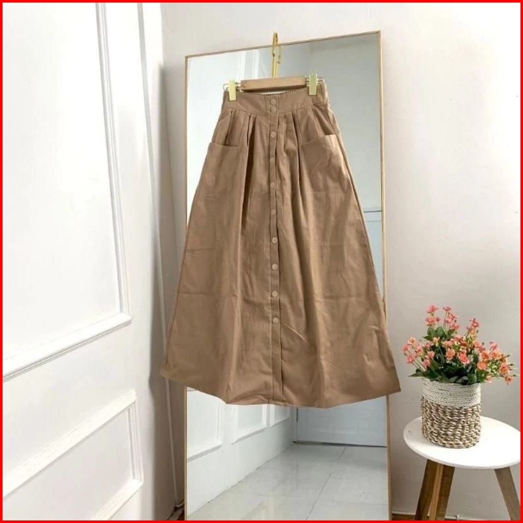 Rok Nuna Skirt Korean Style Bahan Catton Twill Premium Rok Panjang Kancing Kekinian Rok A-line Jumbo