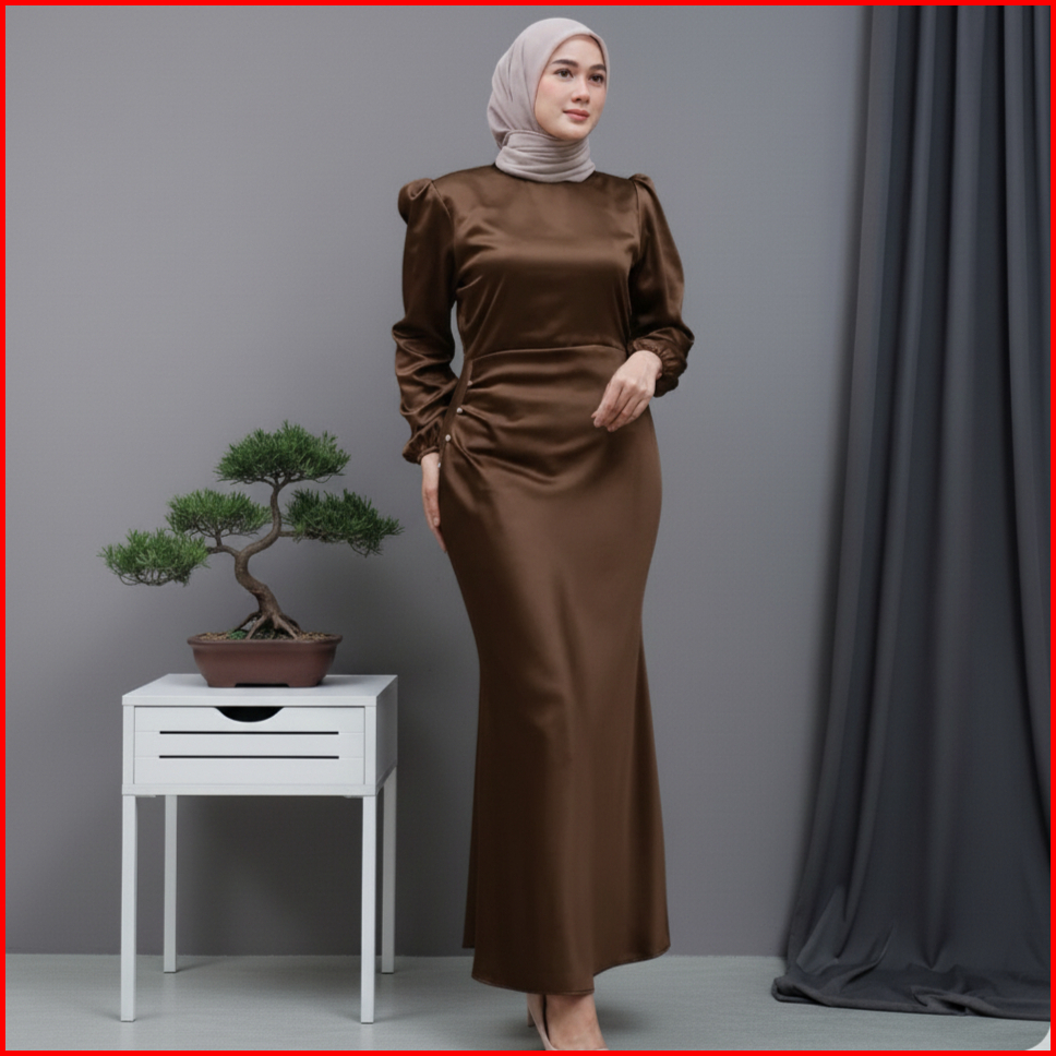 Elora Dress Satin Silk Premium Baju Fashion Wanita Kondangan Wisuda Gamis Terbaru