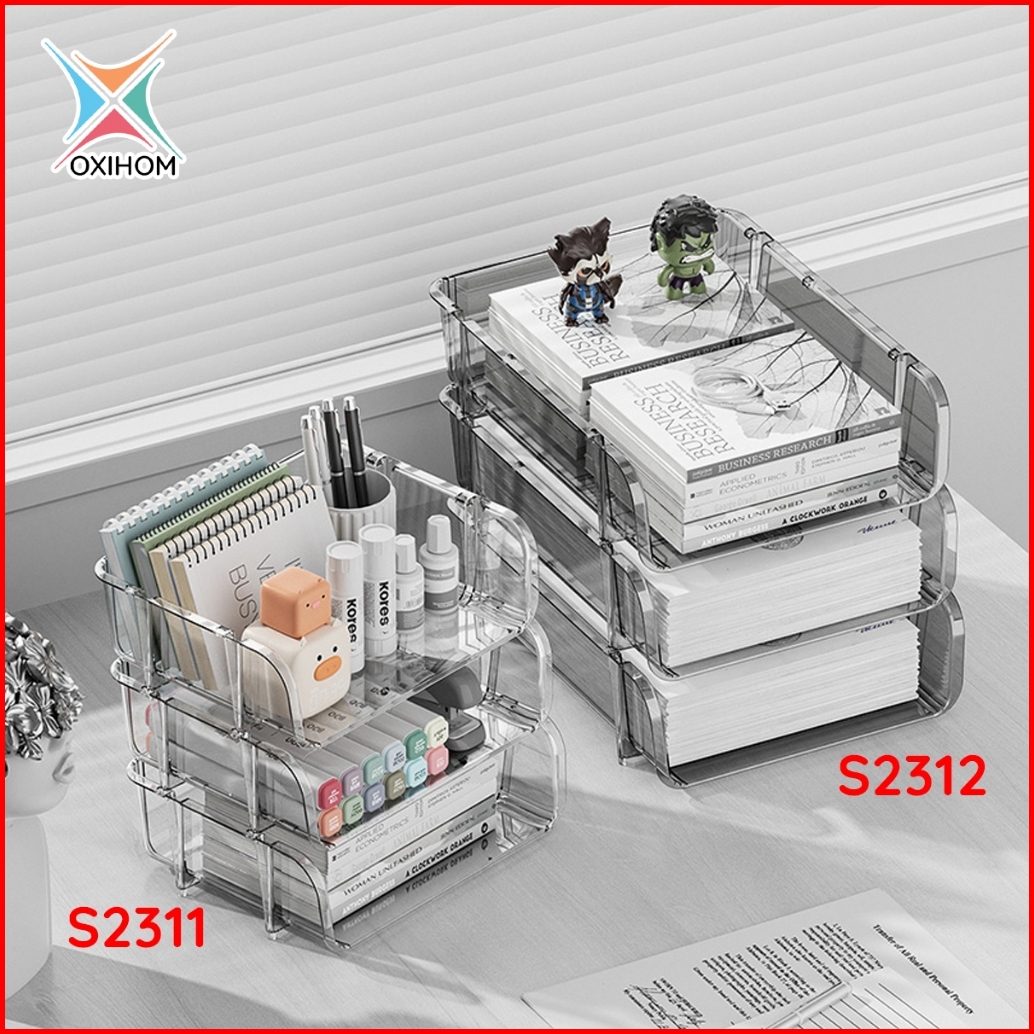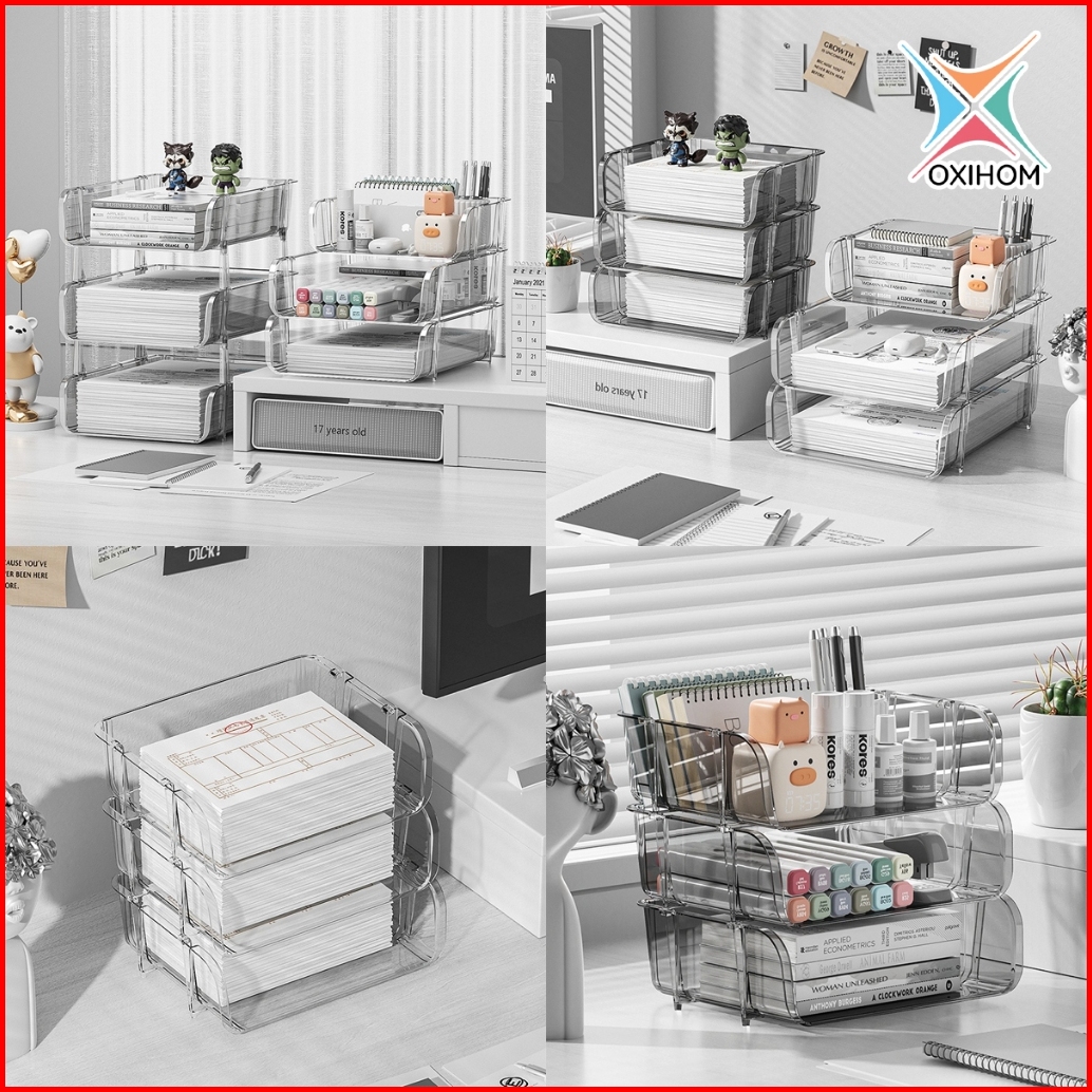 Oxihom Rak Dokumen Rak Kertas Stationary Rak Susun Rak Meja Stackable