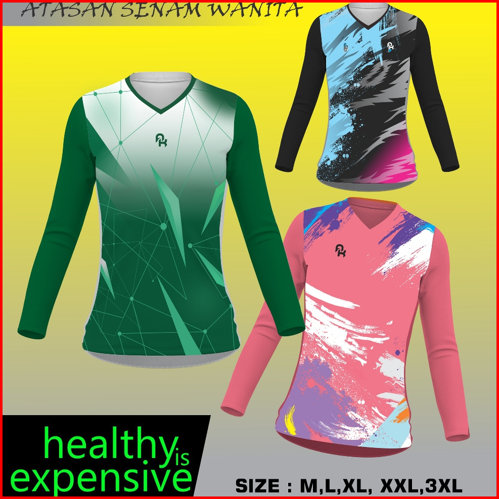 Atasan Olahraga Wanita Printing Kaos Senam Aerobik Fitnes Running Sepeda Santai Bola Voly Cewek Jersey Printing Muslimah