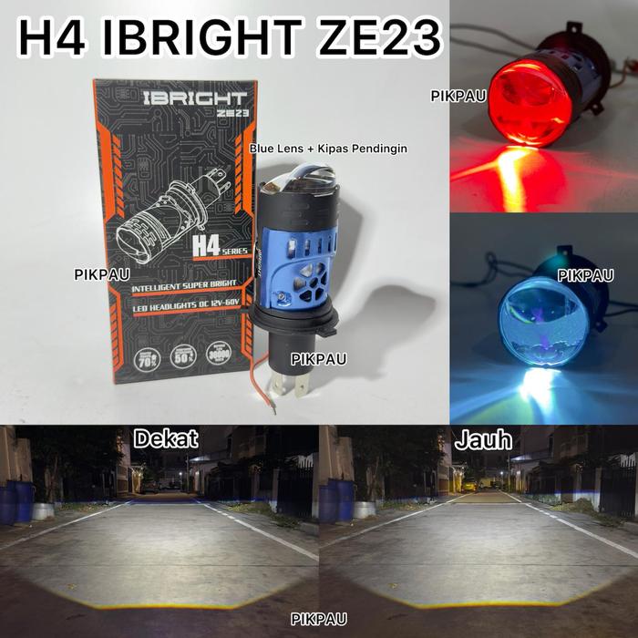 LAMPU UTAMA BILED H4 LED ZE23 IBRIGHT BLUE LENS DENGAN KIPAS PENDINGIN - MERAH, PUTIH PUTIH