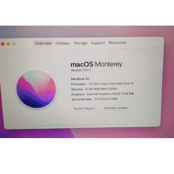 Macbook Air 2017 Core i5 13 inch Os Monterey Ram 8Gb Ssd 128Gb Macbook Second Mulus Bergaransi