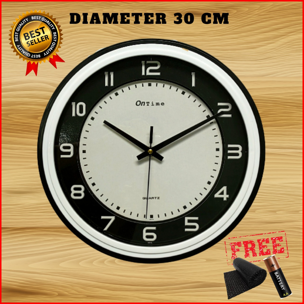 Jam Dinding Besar Murah Polos Minimalis Putih Hitam Merah Biru Diameter 30cm Ontime 565