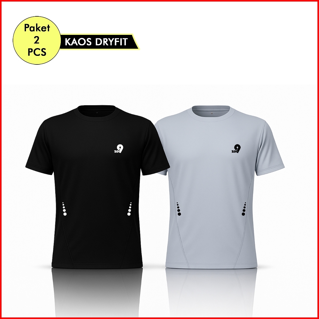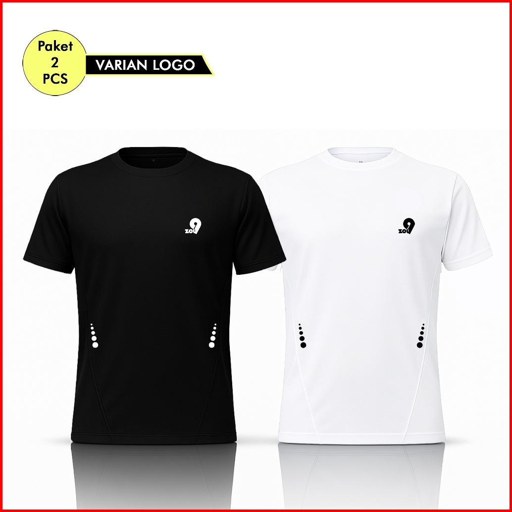 Zou9 - 2 Pcs Kaos Olahraga Pria Dryfit Lengan Pendek Running Sport Gym Fitness