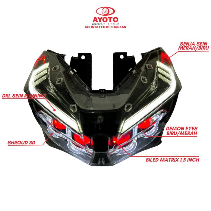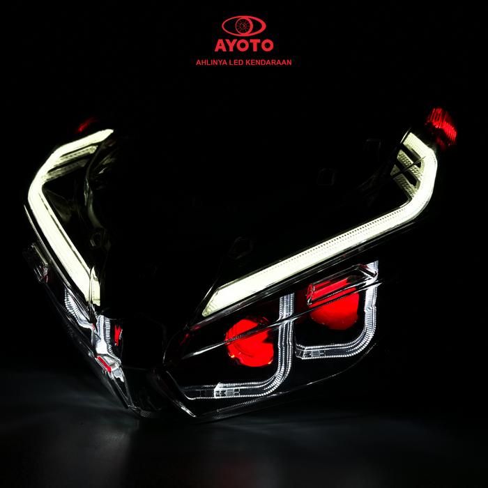 SET BARU FULL LAMPU KEPALA AYOTO MEREK 125/150 DENGAN 4 MATRIX BEAM GANDA 90 WATT LAMPU SELAMAT DATANG LED SEIN RUNNING SISTEM PREMIUM PLUG AND PLAY. - DEMON MERAH