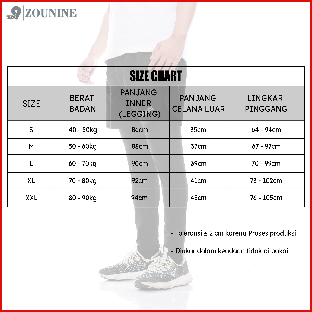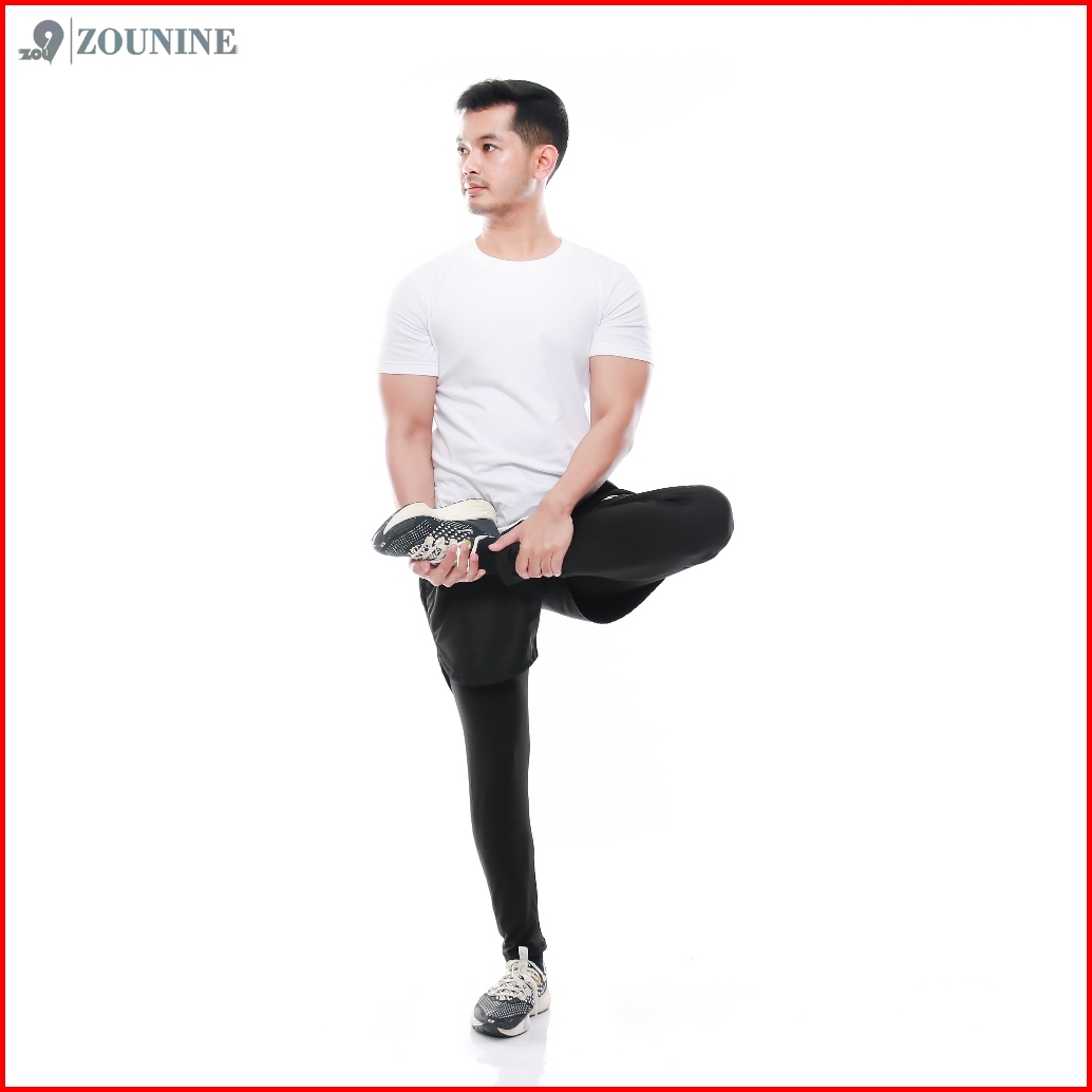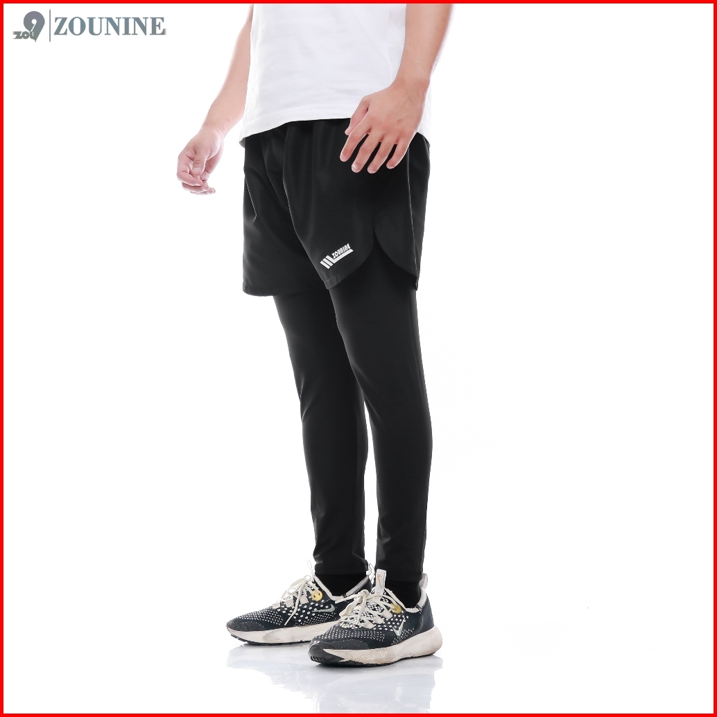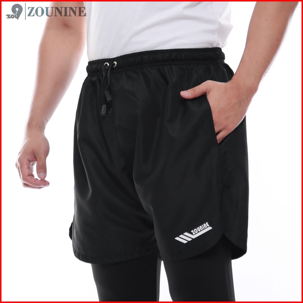 Zou9 Compression Short Celana Olahraga Panjang Gym Running Lari Pria Black 2 In 1