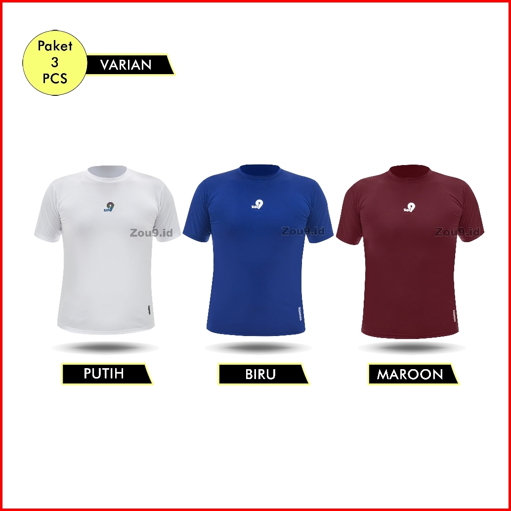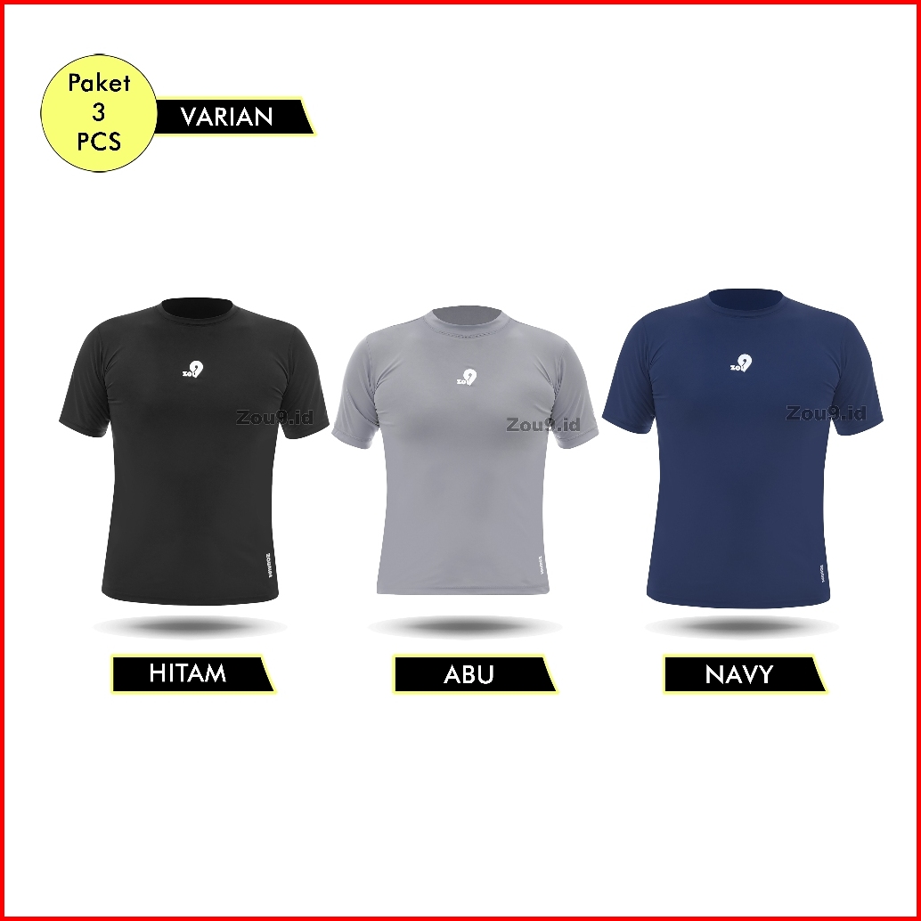 Zou9 - Paket 3 Pcs Compression Shirt No Muscle Man Baselayer Manset Baju Olahraga Pria Gym