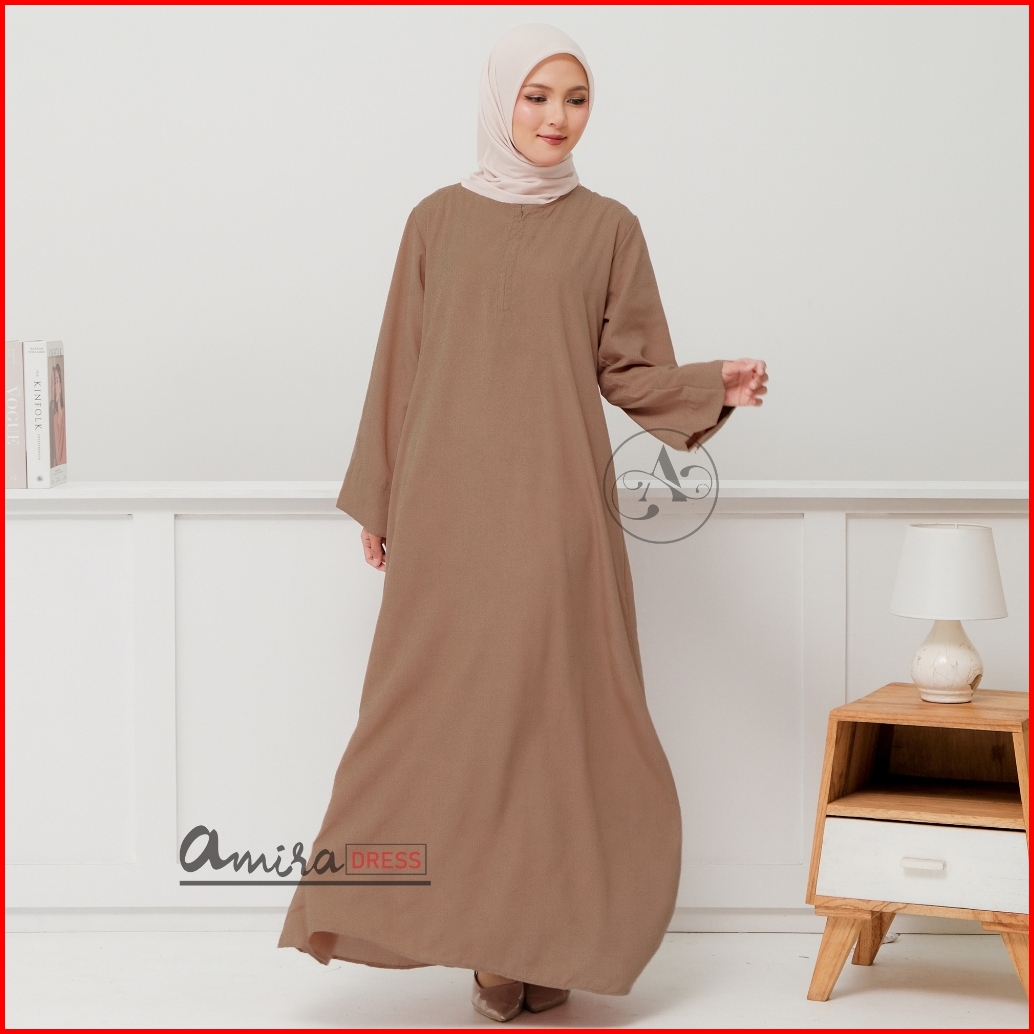 Amira Dress Abaya Polos Wanita Kekinian Wolfis Premium Ukuran S M L Xl Xxl Long Dres Gamis Abaya Wanita Muslim Umroh Sim