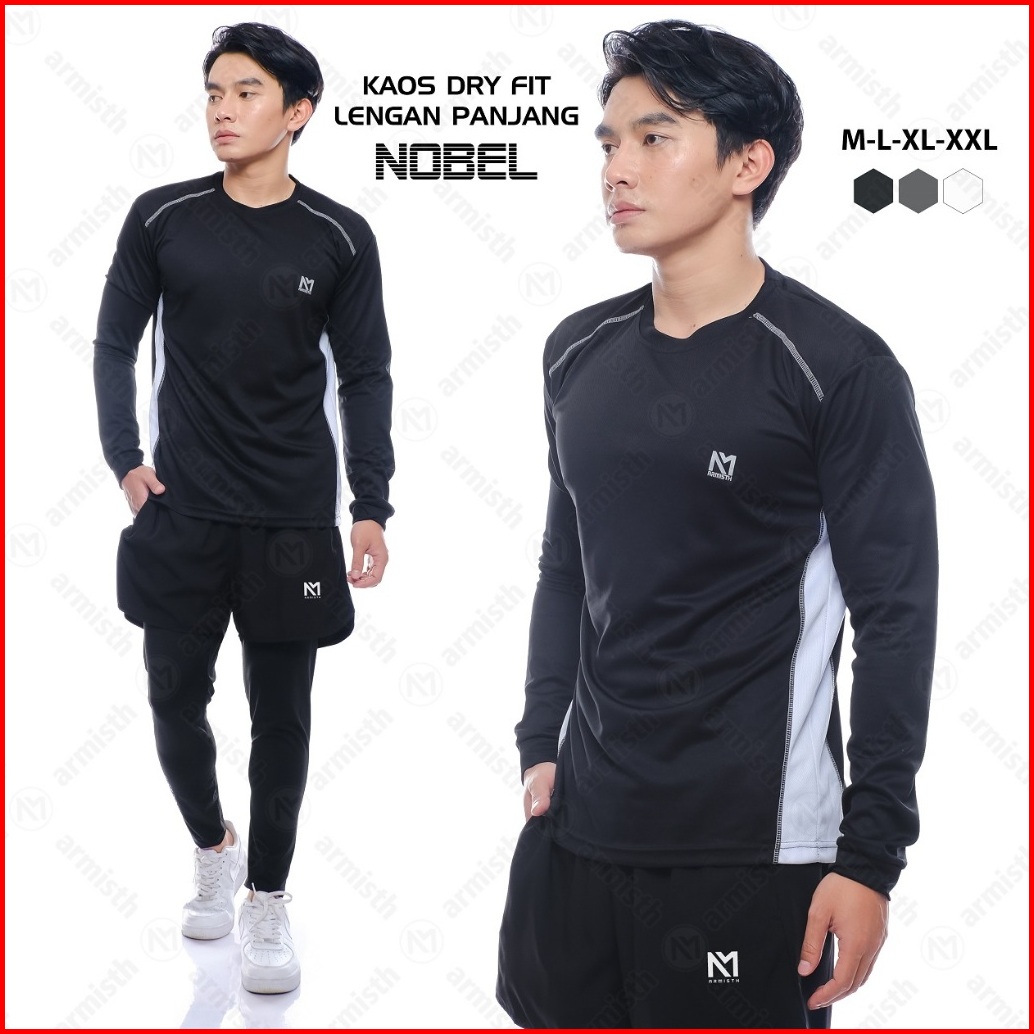 Armisth Kaos Olahraga Dryfit Lengan Panjang Pria Nobel Atasan Sport Running Gym Cowo