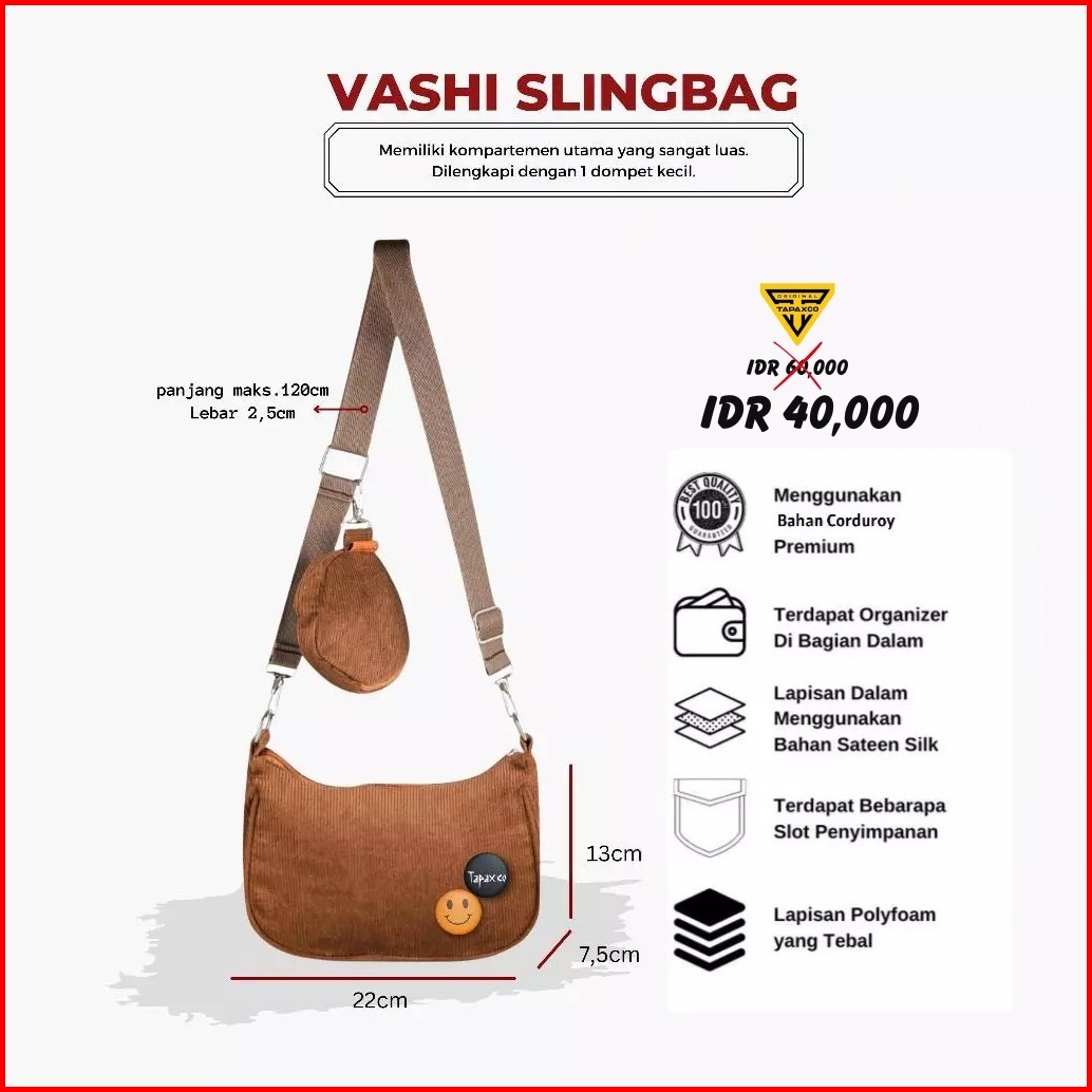 Tas Selempang Corduroy Vashi Tas Slingbag Wanita Kobeo I Free 2 Bross Dan Bag Charm