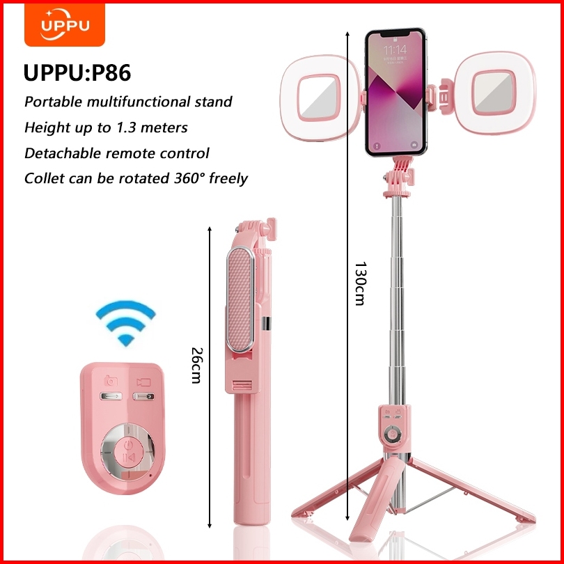 Uppu P86 130cm Selfie Stick Tripod Tongsis Konten Kreator Remote Control Bluetooth 7 Tombol Tripod Mini