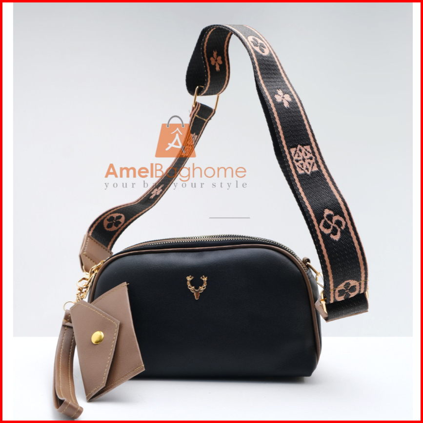 Tas Selempang Wanita Mewah 3 Ruang Multifungsi Terbaru Amelbaghome Tali Anti Pegal