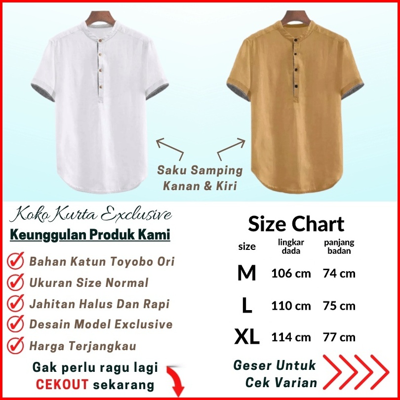 Baju Koko Pria Lengan Pendek Dewasa Koko Kurta Hanafi Koko Casual Matt Katun Halus Adem Serap Keringat