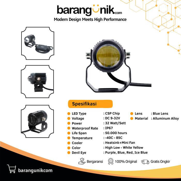 LAMPU TEMBAK D2 32W MINI LASER NINE LUXIMOS Q2 PRO DEVIL BLUE LENS SUPER BRIGHT 3 COLORS - BLUE