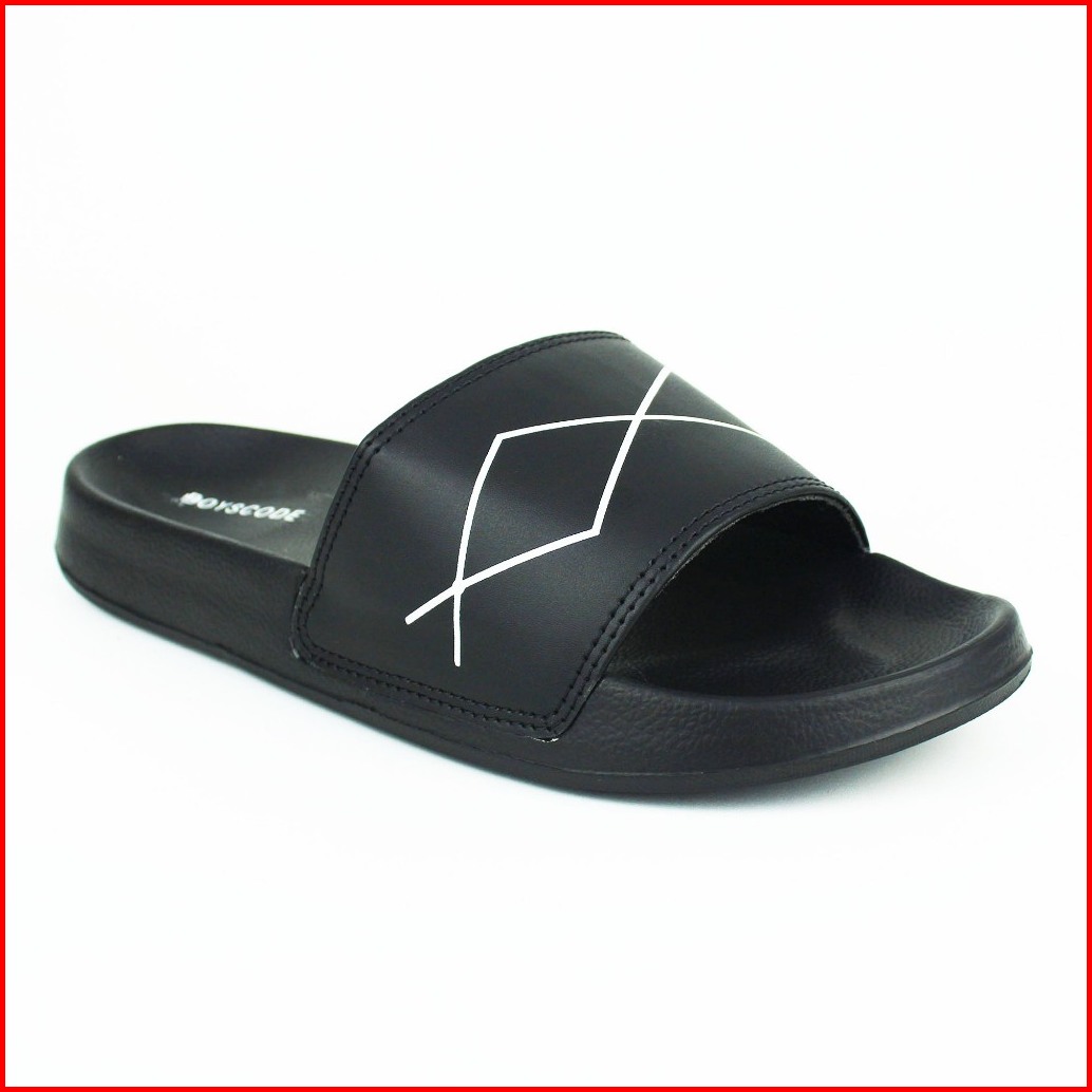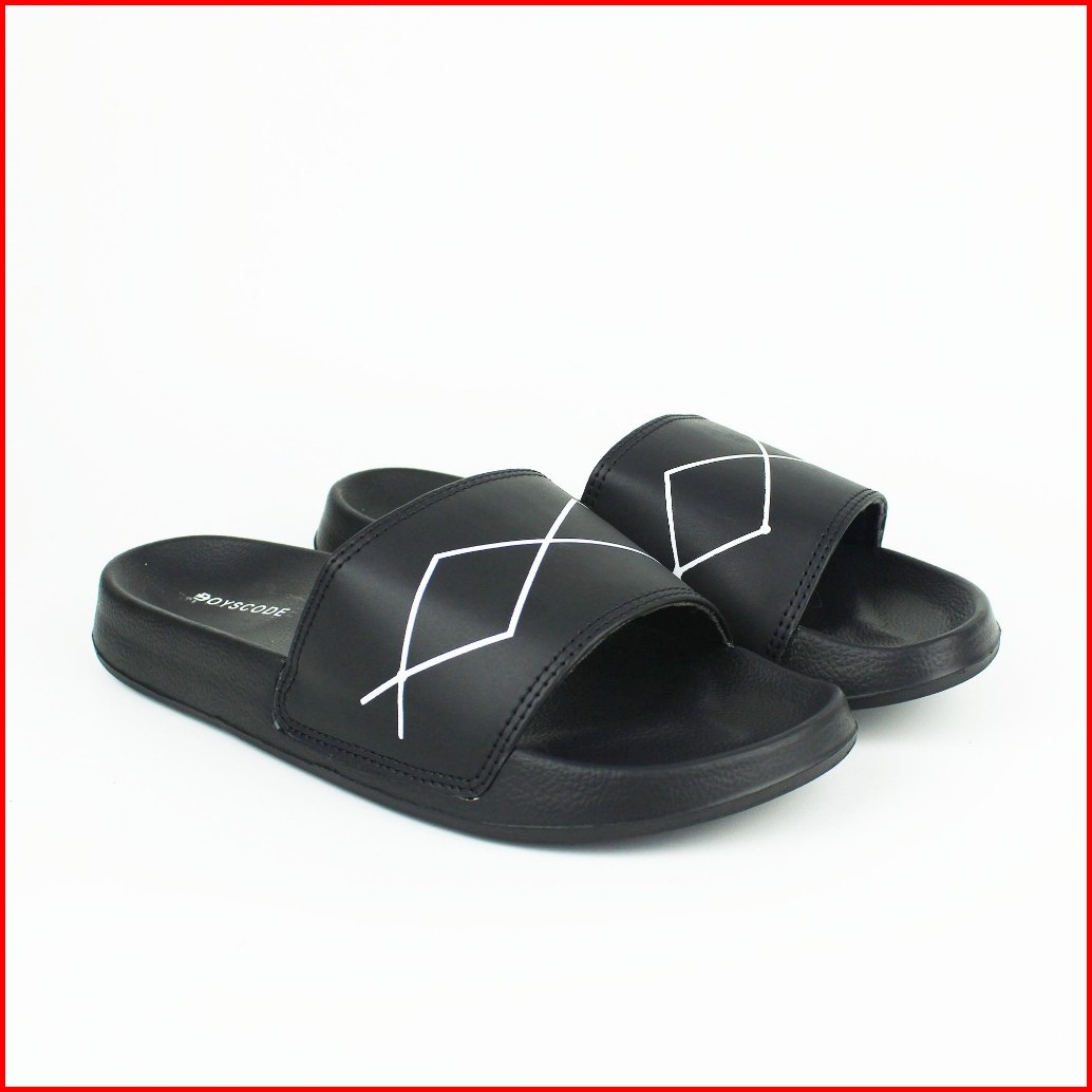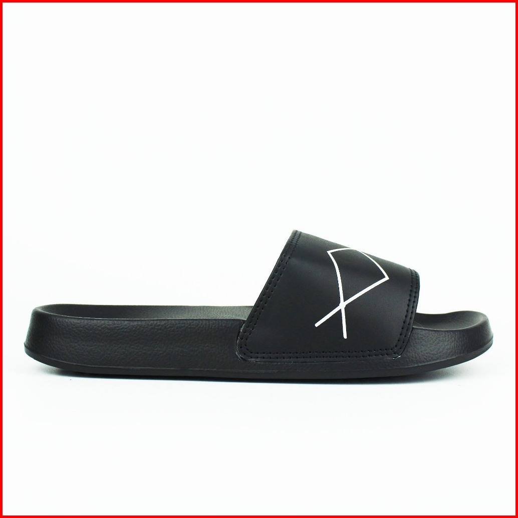 Boyscode Sendal Selop Distro Pria Wanita Curves Lines Hitam Sendal Slip On Sendal Slop Sendal Slide