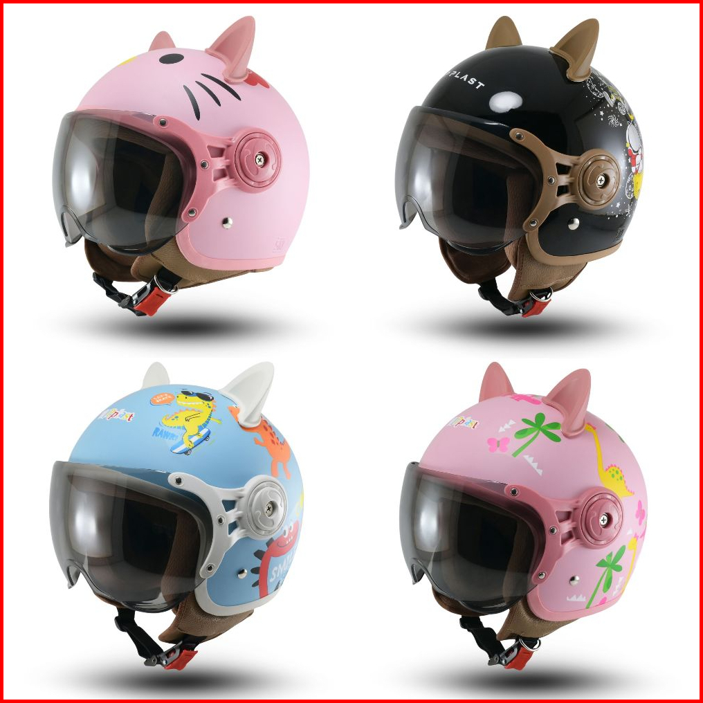 Helm Anak Lunar Kids Bagus Karakter Kartun Motif Pilot Lucu Pakai Kuping Kucing Sni