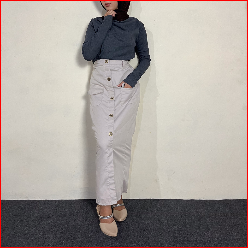 Zooya - Gea Skirt Rok Panjang Wanita Korean Style Skirt Button Semi A Line