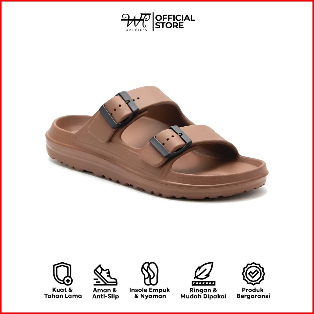 Wellplans - Sandal Slop Pria Anti Slip Double Strap Tan