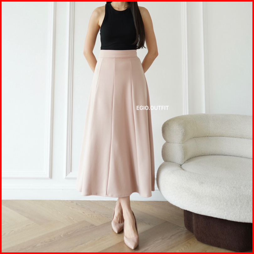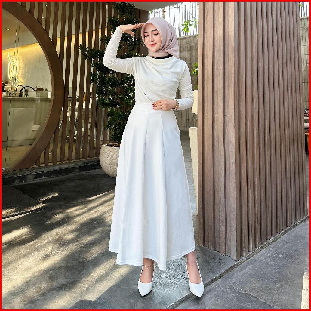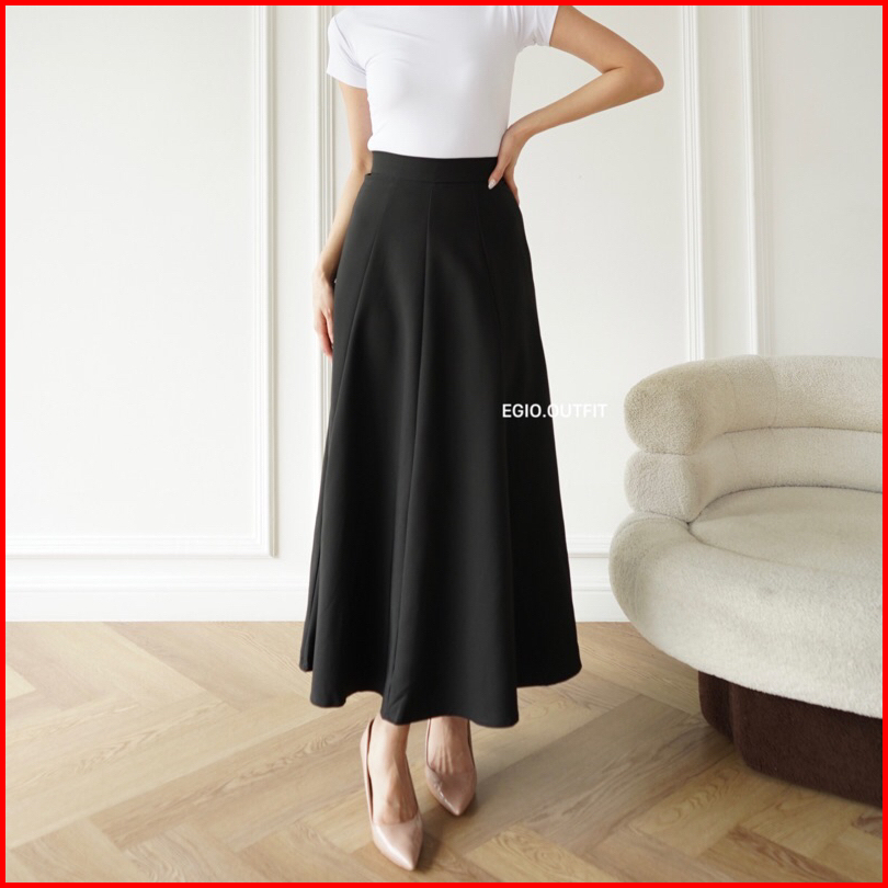 Audy Skirt - Korean Loose Maxi Skirt Rok Wanita Polyster Anti Kusut - Rok Flare Wanita - Rok Scuba Basic Polos
