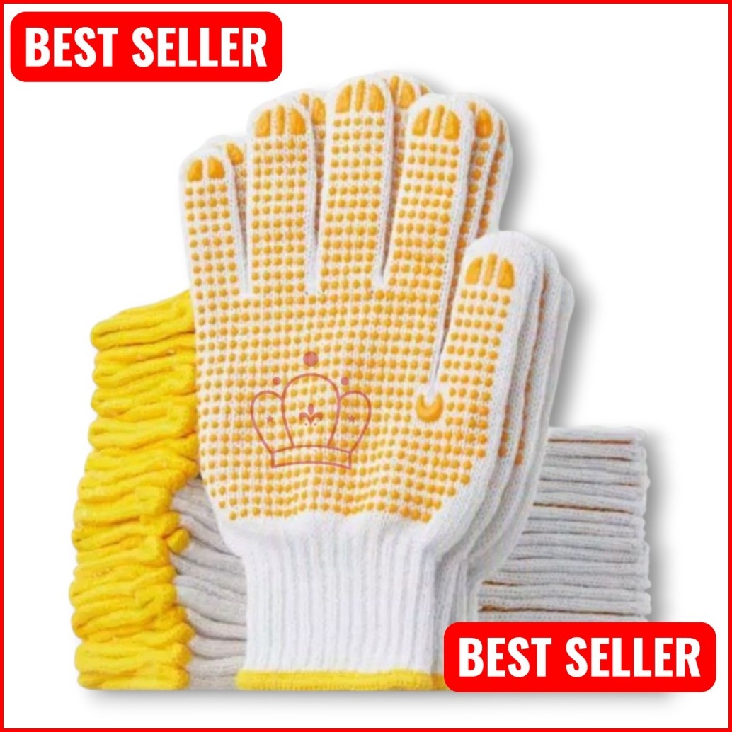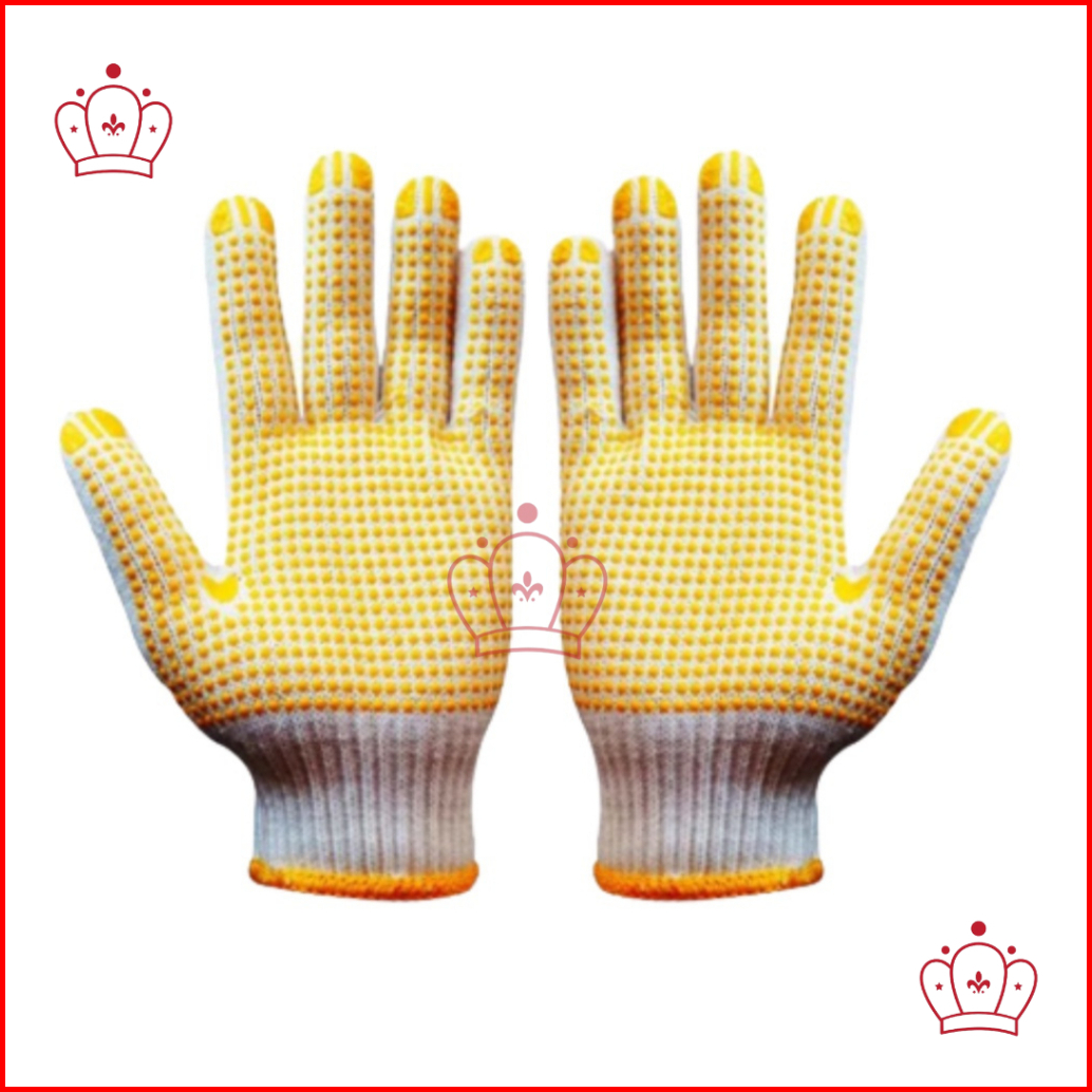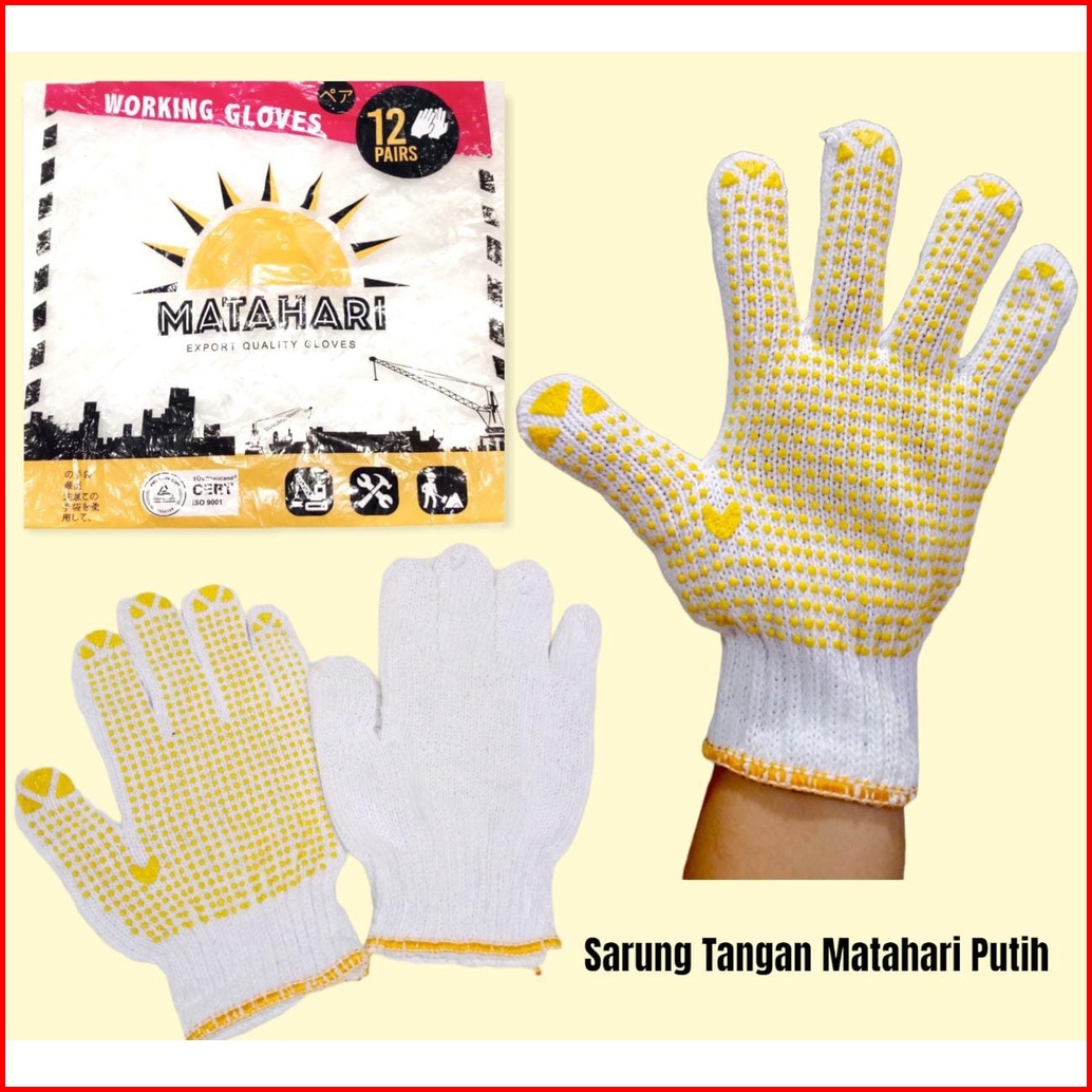 Sarung Tangan Kerja Proyek Merk Matahari Putih Bintik Kuning Sarung Tangan Kain Benang Bintik Sarung Tangan Serbaguna Gr