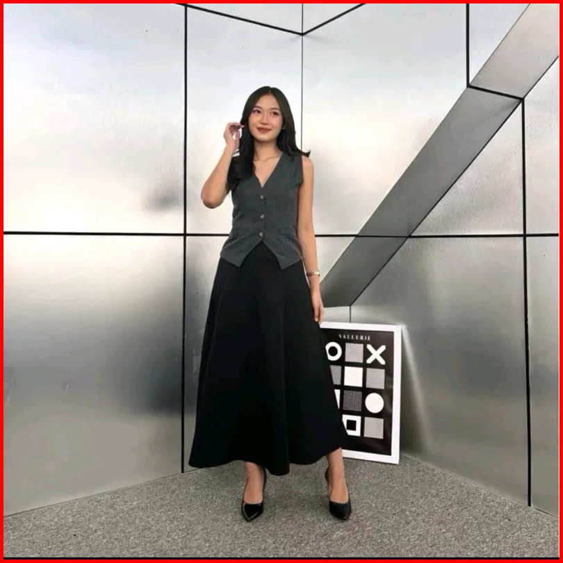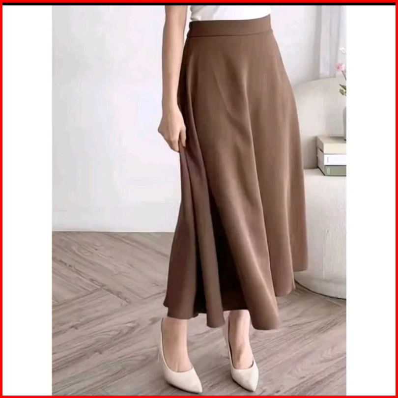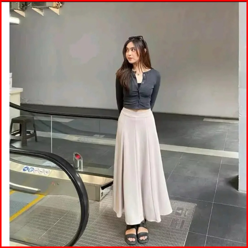 Audy Skirt - Rok Loose Maxi Skirt Rok Wanita Anti Kusut Polyyester - Rok Flare Wanita - Rok Basic Polos - Maxi Rok Panja