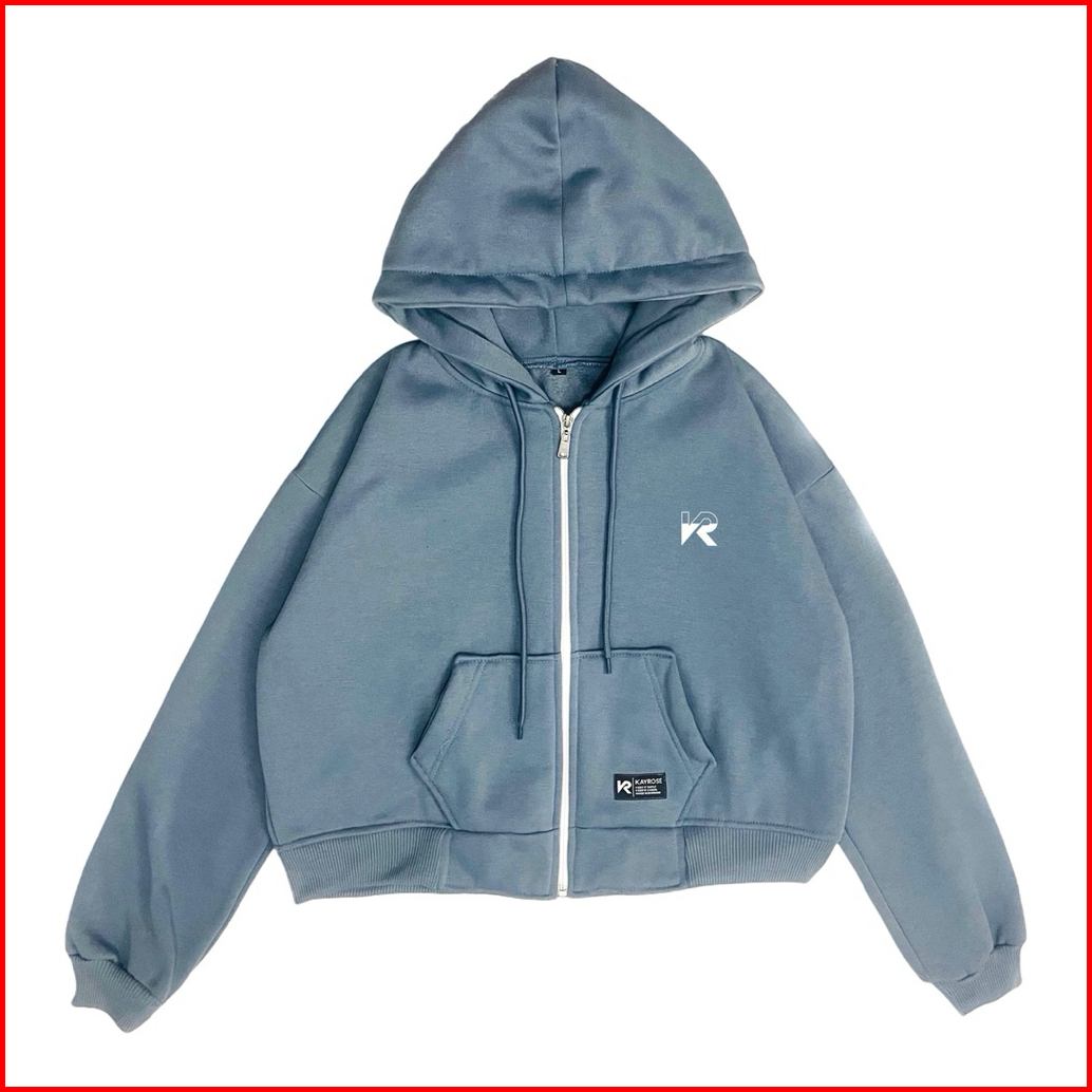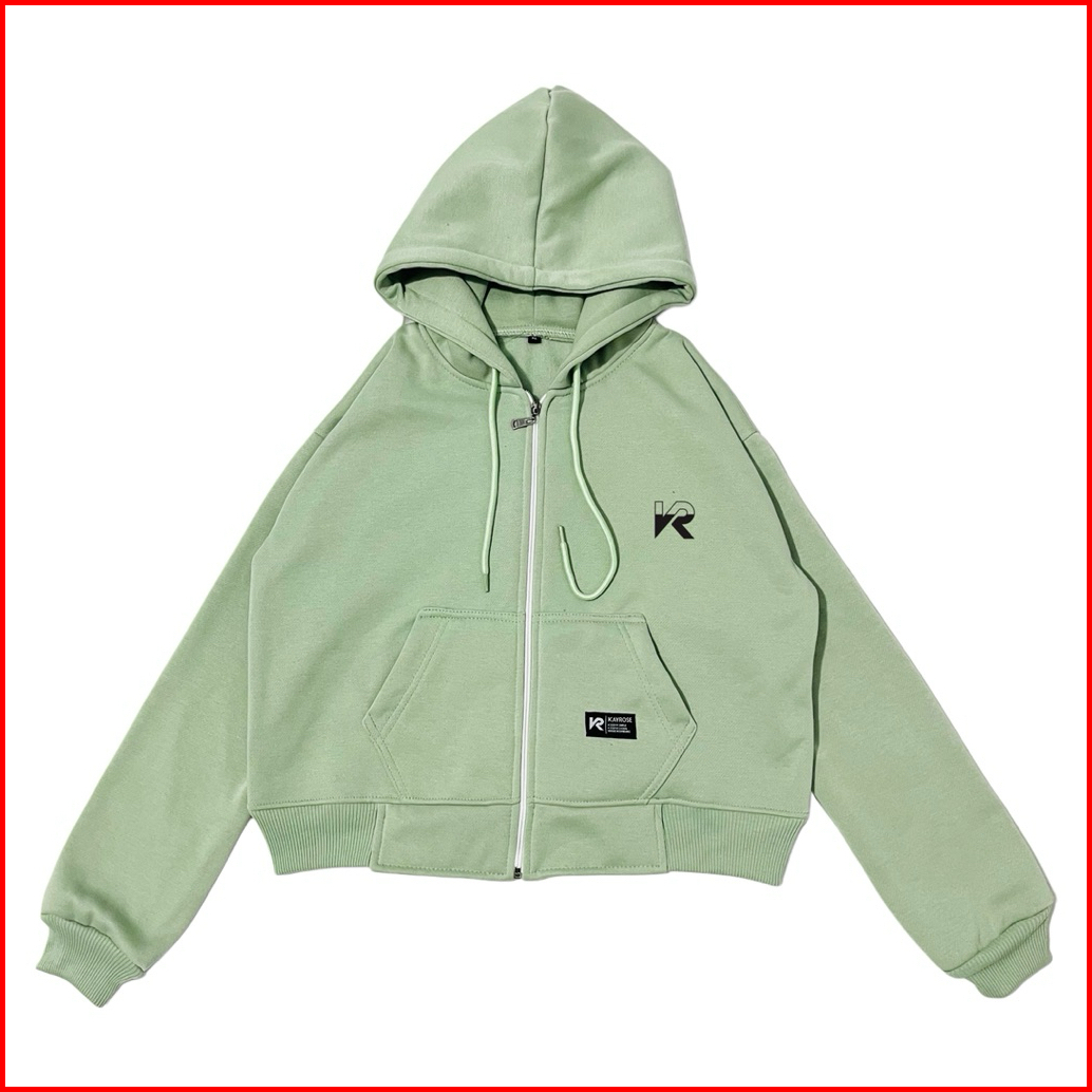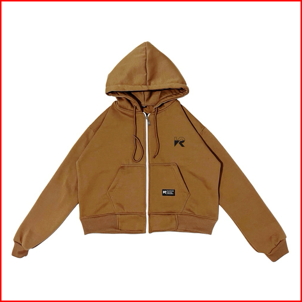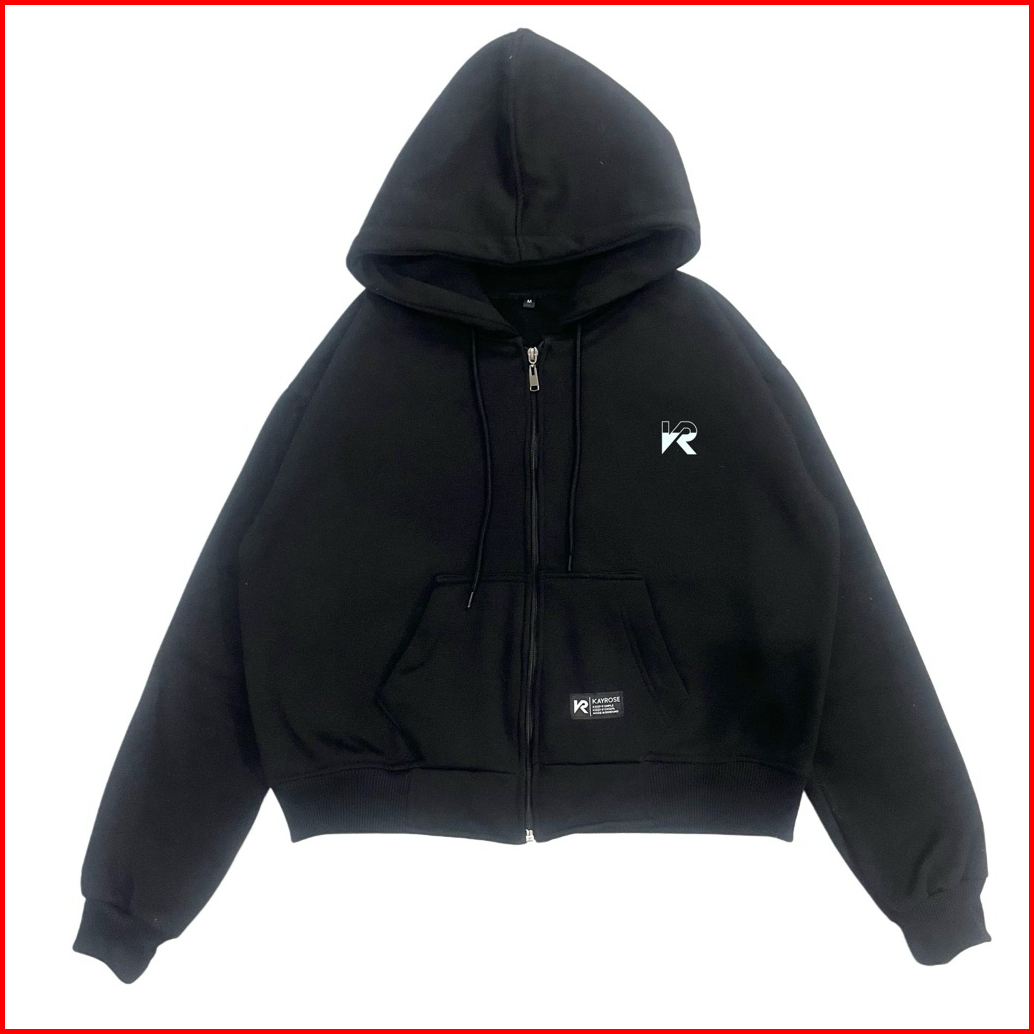 Jaket Hoodie Zipper Crop Logo Kayrose Wanita Tebal Nyaman