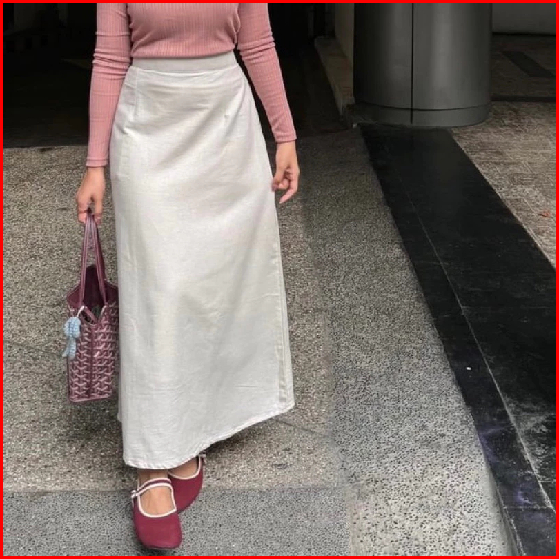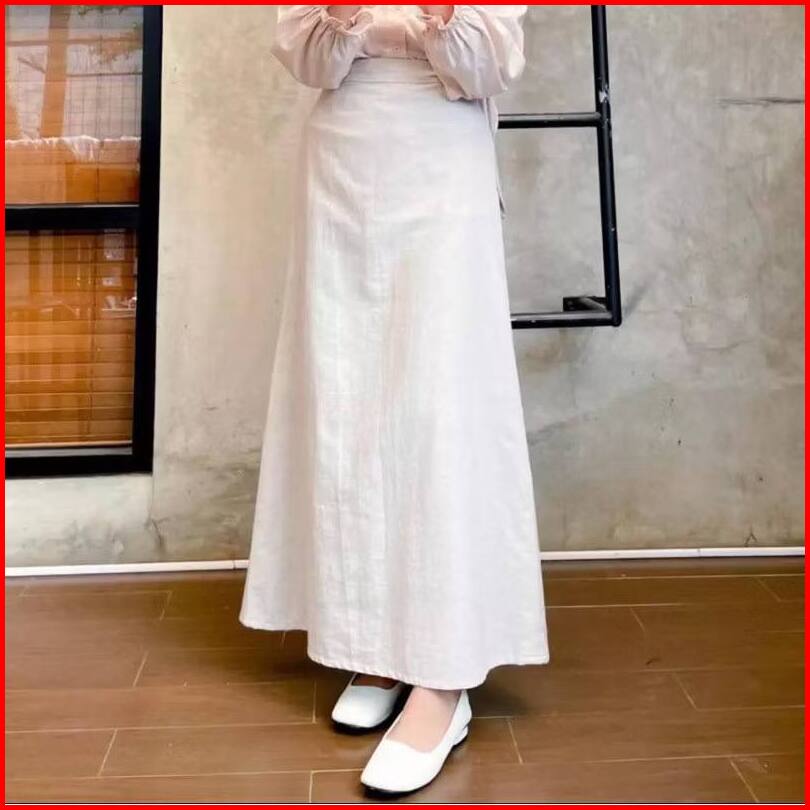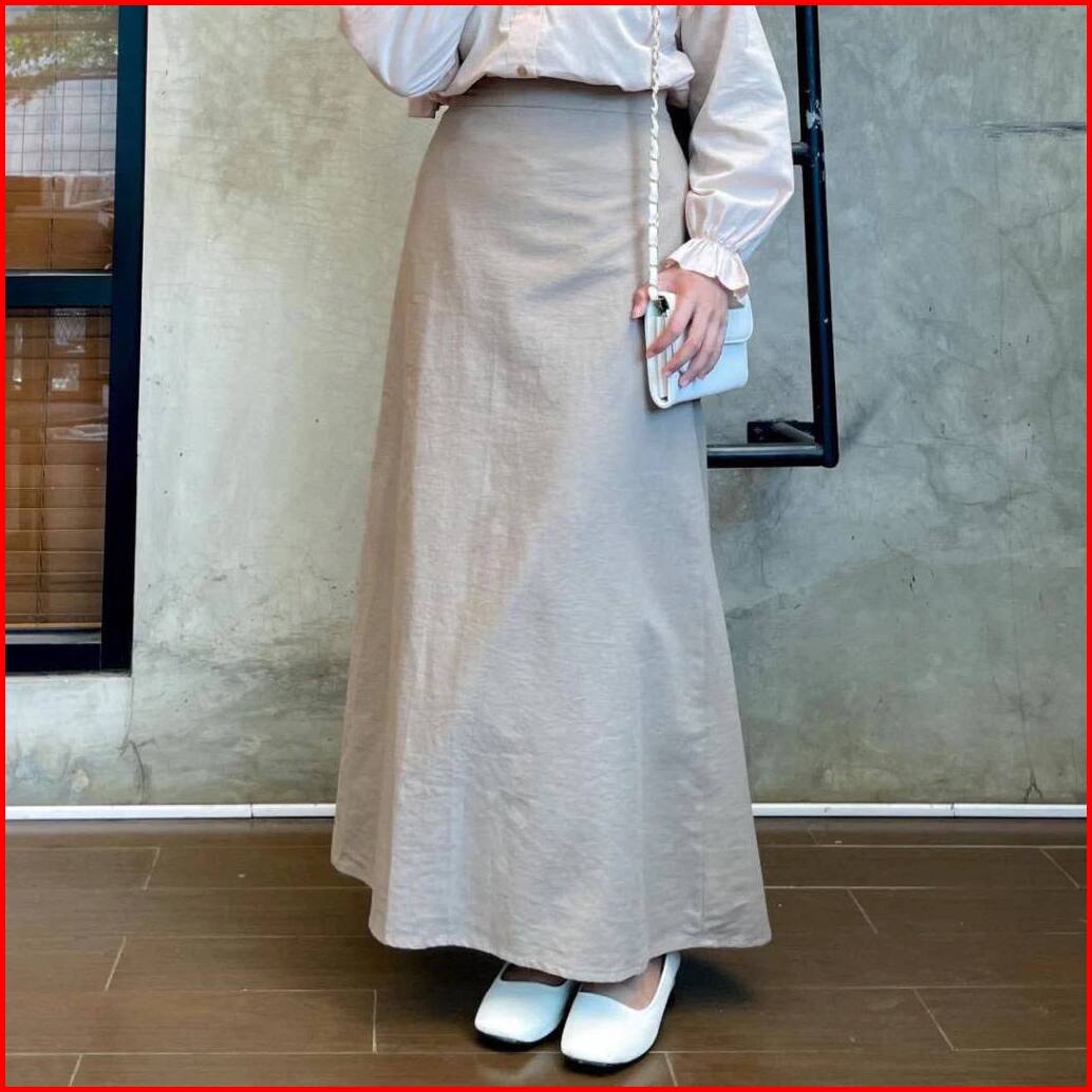 Shellaoutfit Syakila - Rok Korean Style - Rok Wanita Basic - A-line Maxi Skirt - Rok Linen Terbaru