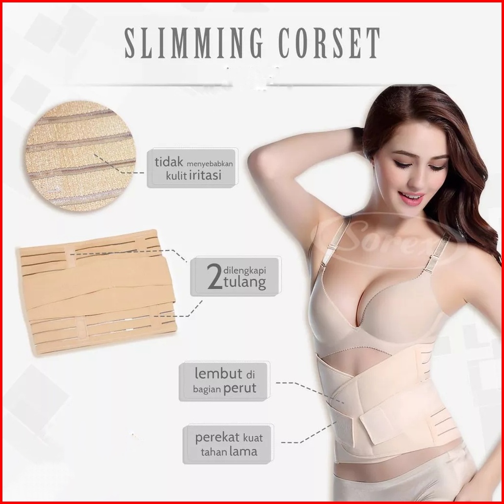 Sby Korset Pelangsing Wanita Ibu Setelah Melahirkan Slimming Corset Polyester Katun Pengecil Perut Double Perekat Pembak