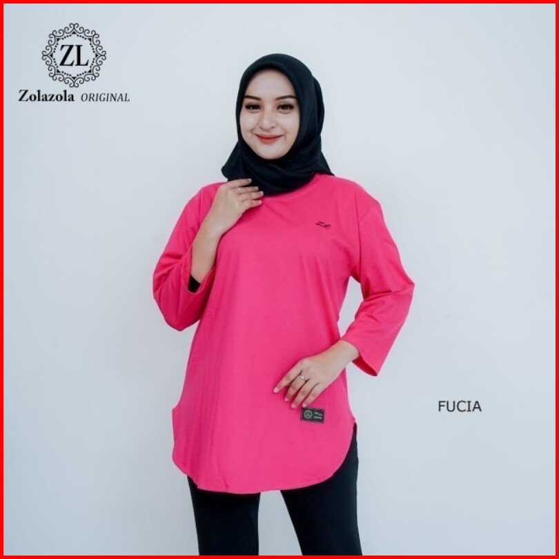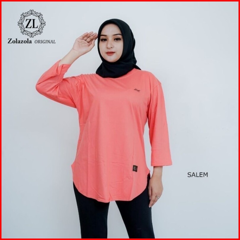 Kaos Oval Lengan 7 8 Zolazola Original Cotton Combed 24s Atasan Baju Polos Wanita