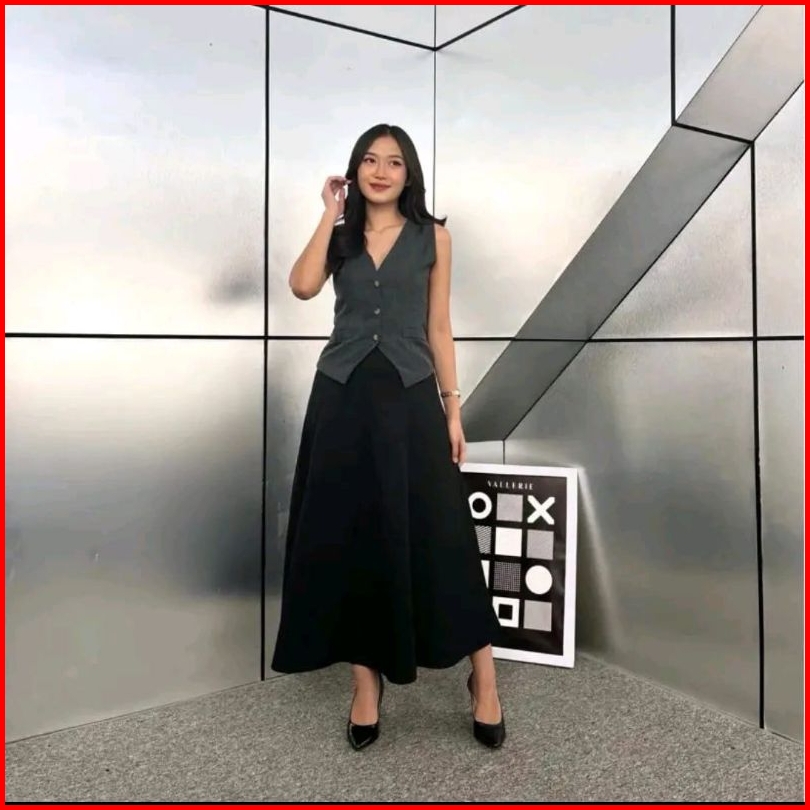 Audy Skirt - Korean Loose Maxi Skirt Rok Wanita Anti Kusut Polyester - Rok Flare Wanita - Rok Basic Polos - Maxi Rok Pan