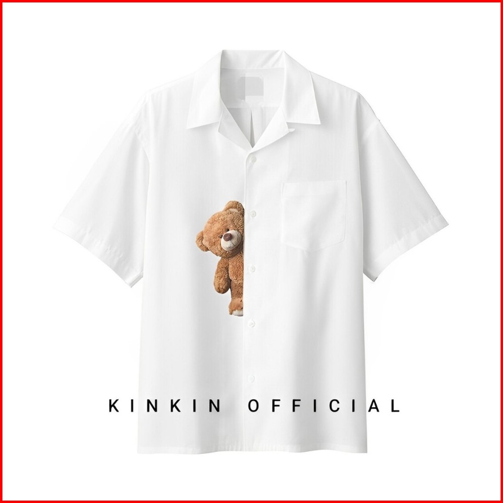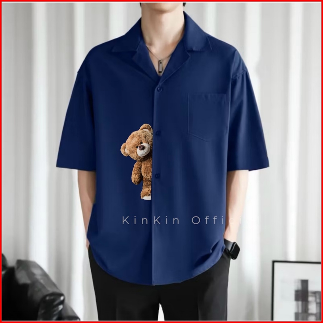 Kemeja Vintage Lengan Pendek Kemeja Bear Polos Lengan Pendek Hem Pria Hawai Terbaru Pantai