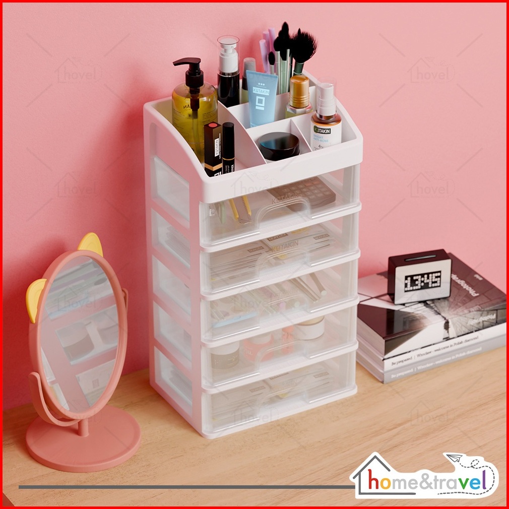 Hovelshop Rak Skincare 5 Susun Tempat Make Up Laci Kotak Plastik Storage Box Organizer