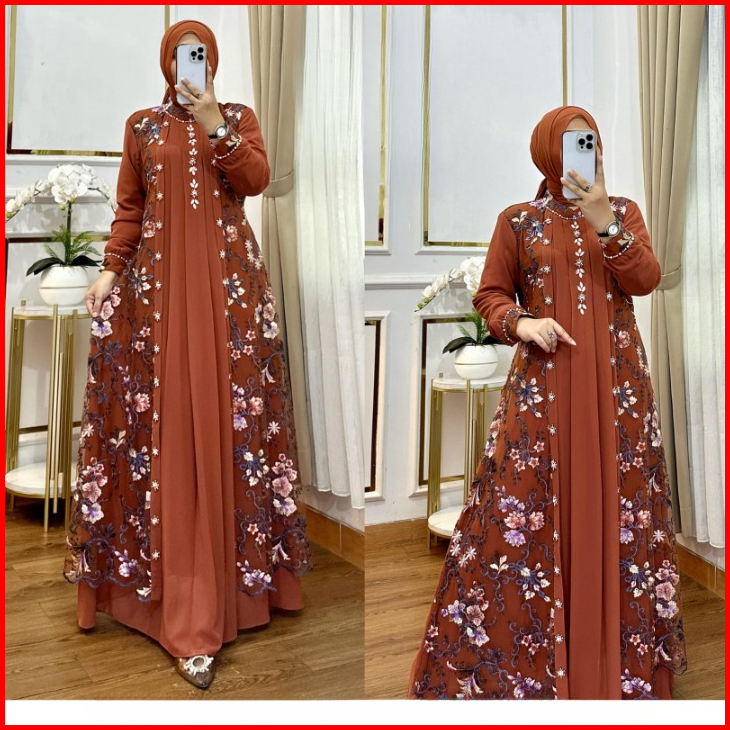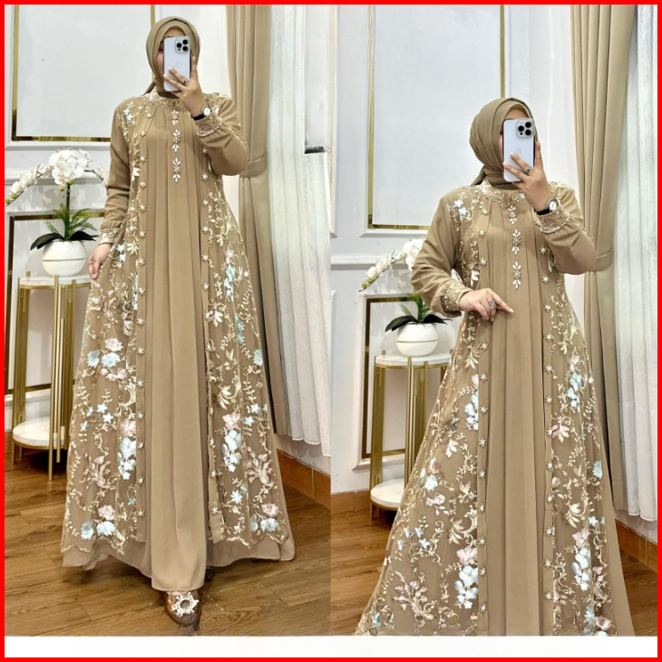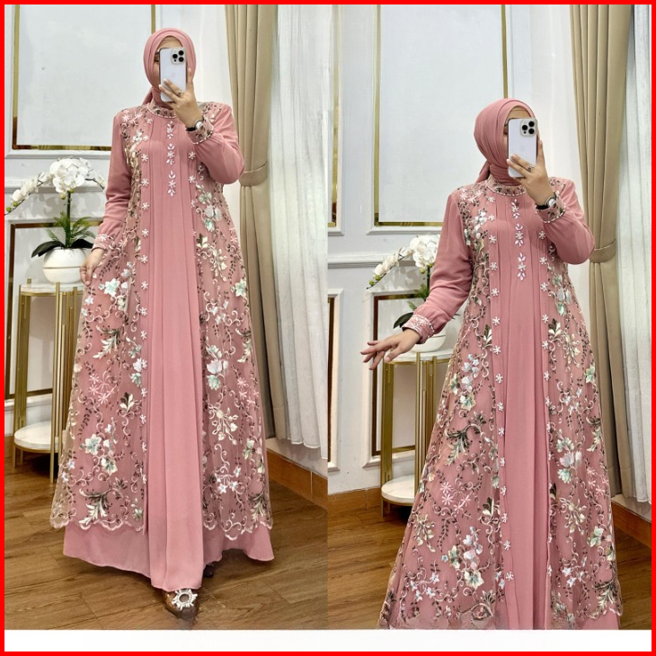 Gamis Wanita Pesta Mewah Elegan Misela Dress Bo Bahan Bahan Brukat Ataau Tille Bordir Timbul Warna Premium Size M L Xl X