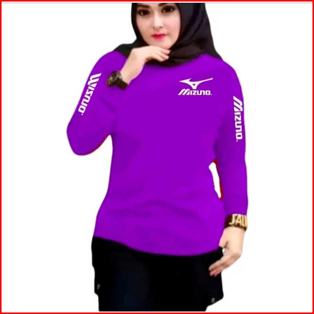 Baju Senam Wanita Lengan Panjang Kaos Atasan Olahraga Fittness Gym Voli Aerobic