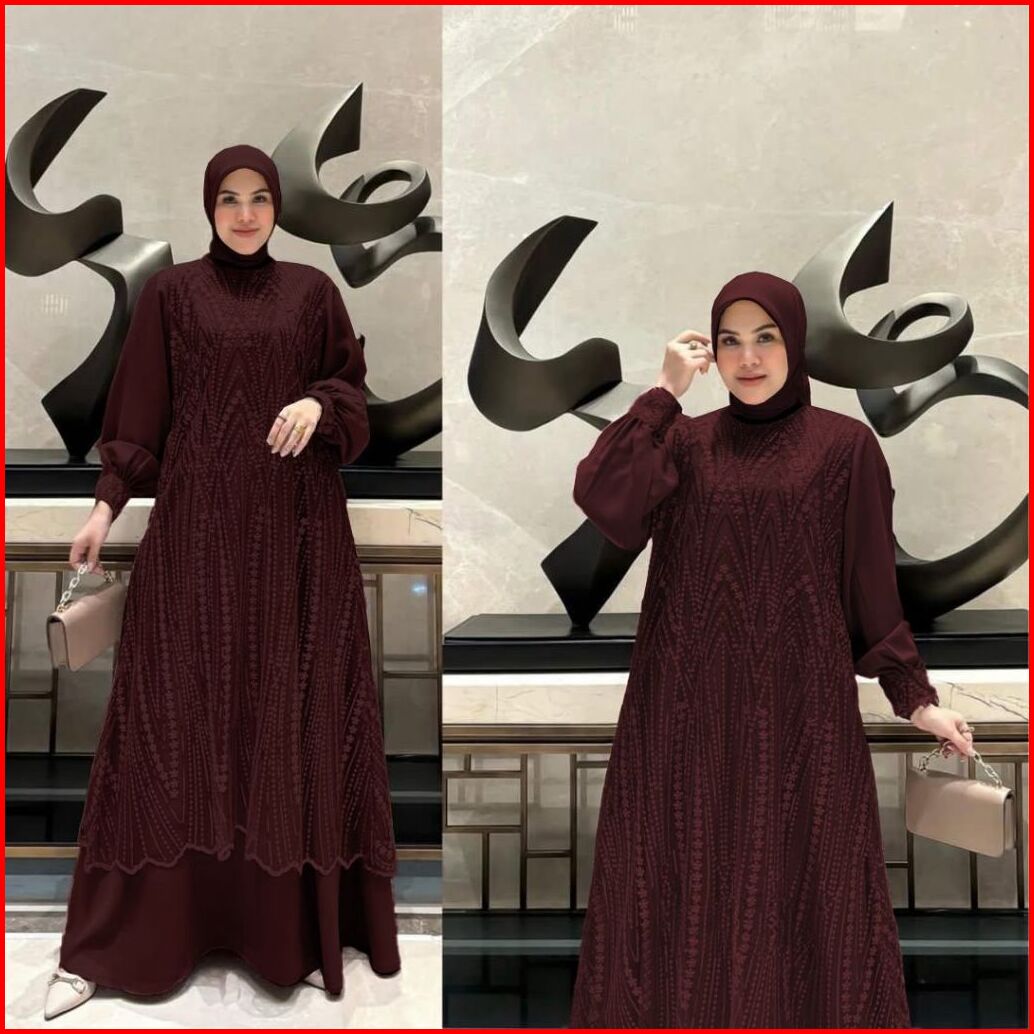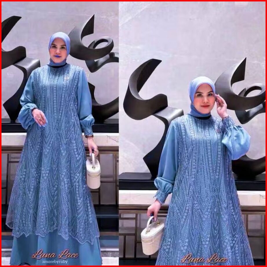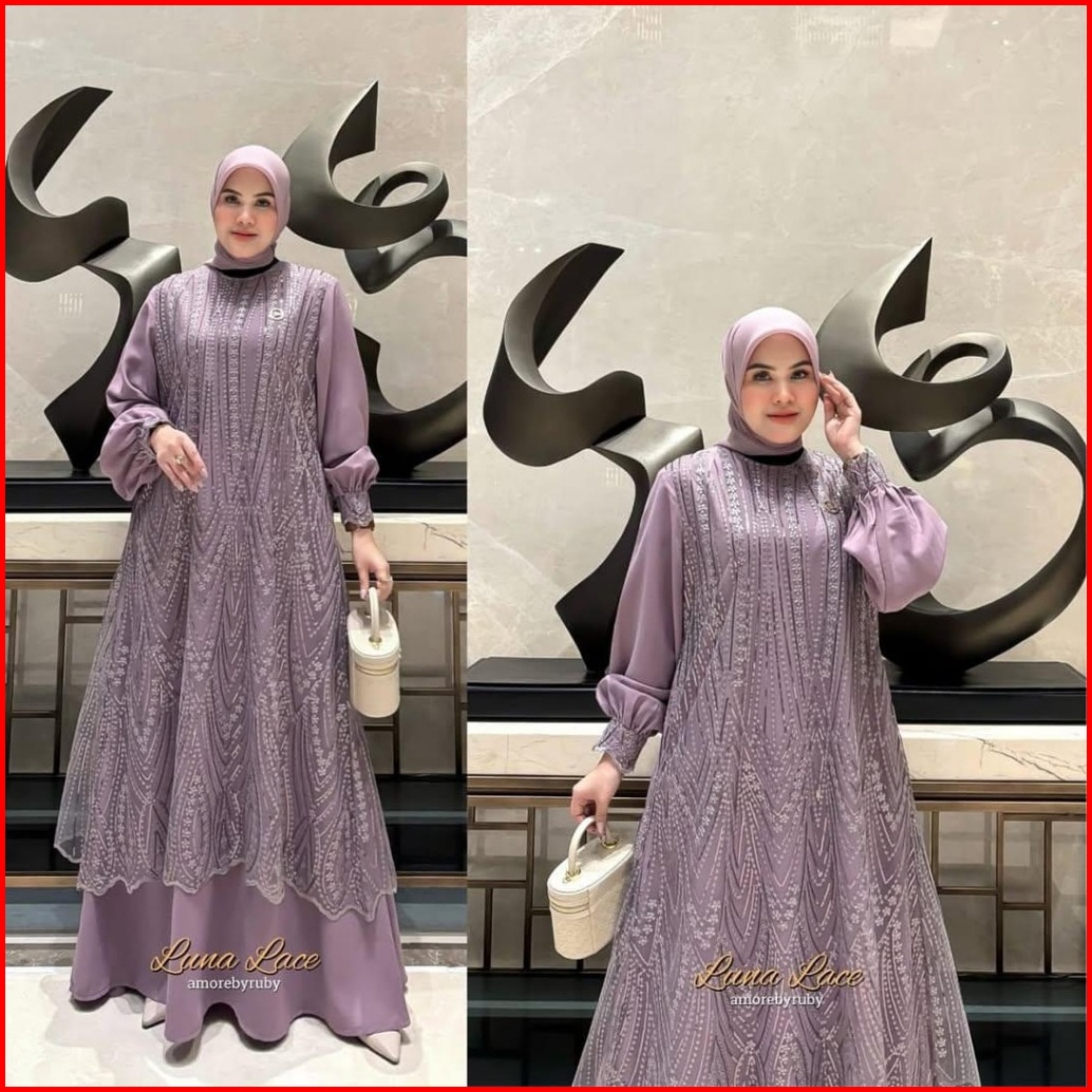 Fukuzy Hijab Luna Lace Dress Amorebyruby Ceruty Babydoll Mix Full Brokat Kondangan Ceruty Gamis Jumbo Gamis Kekinian Gam