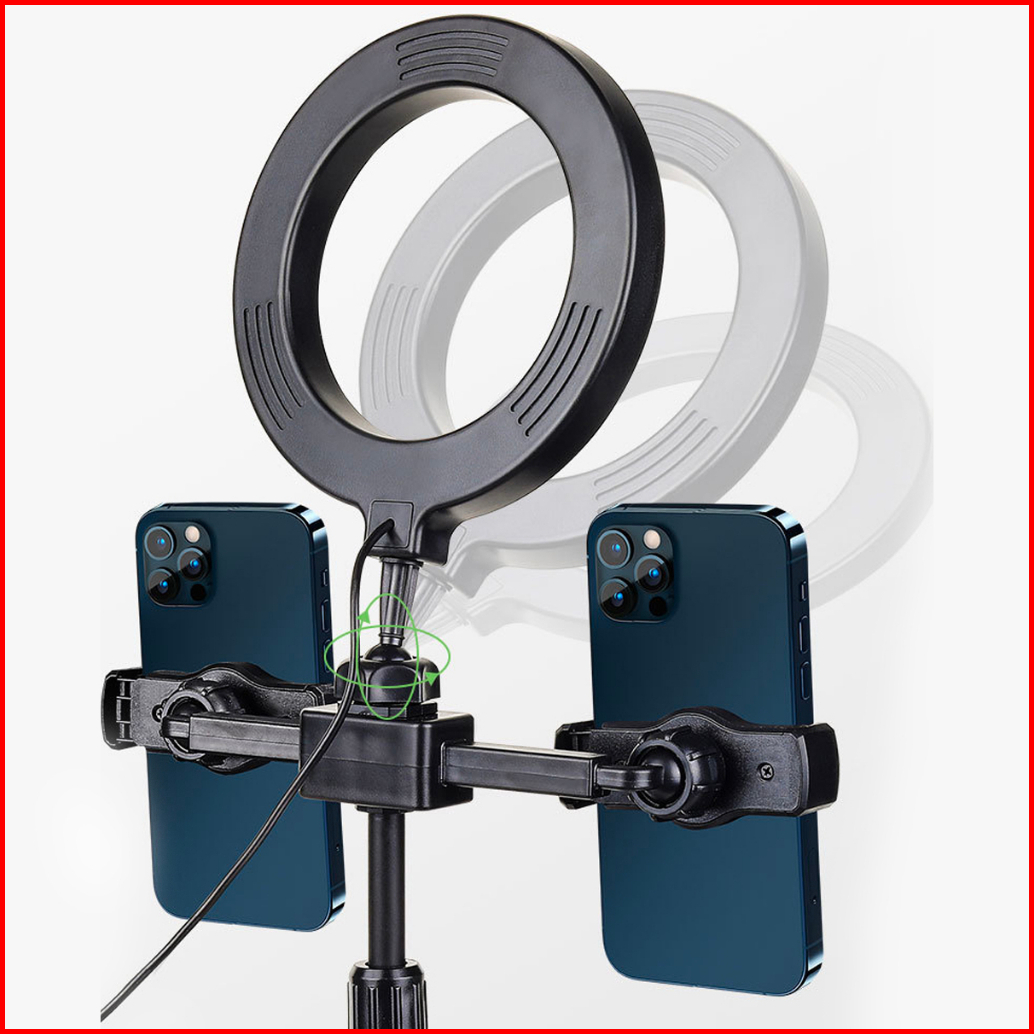 Lightning Ring Light 16cm Hp Tripod 2 Holder Mini Stand Selfie Streaming Tripod Usb Vlog Lampu